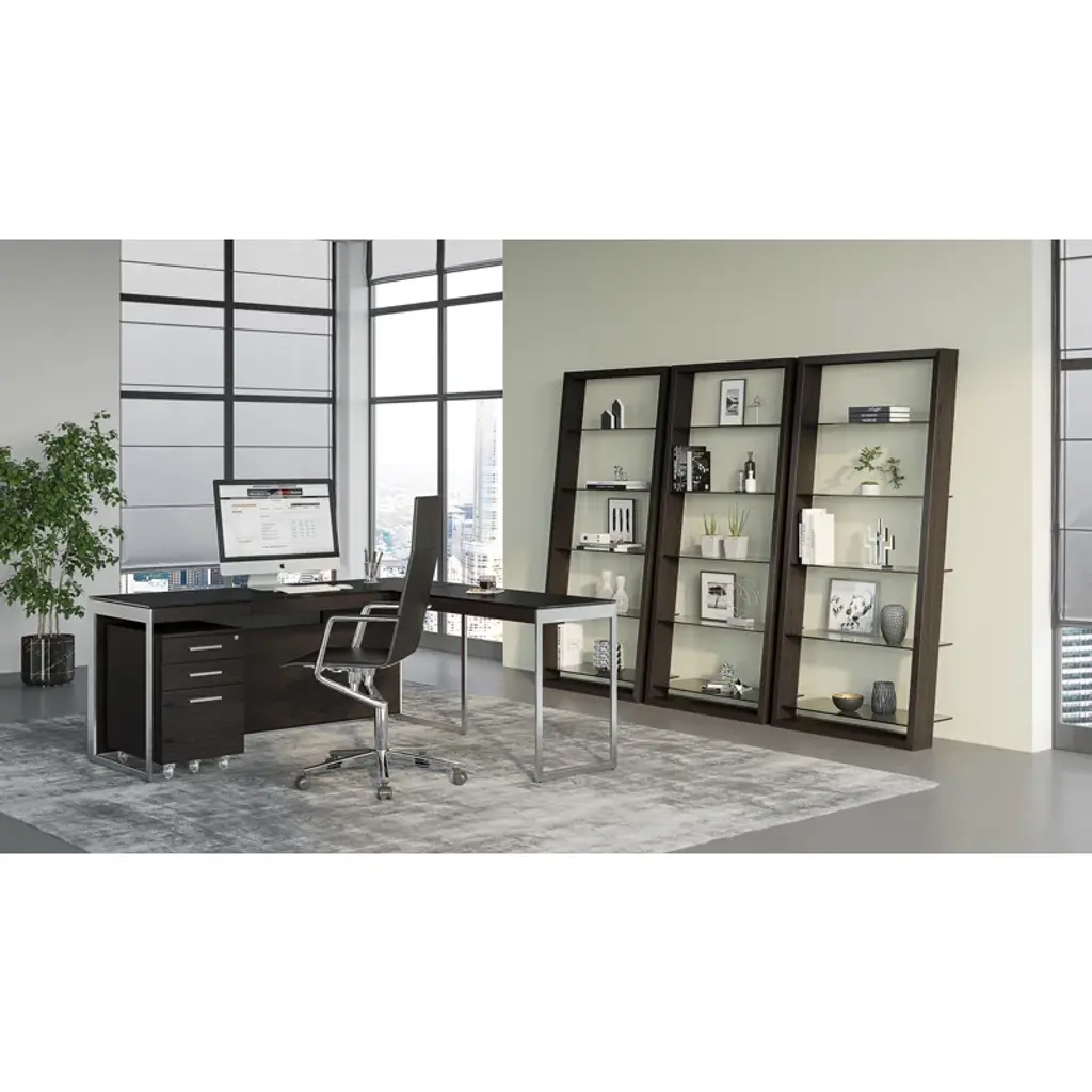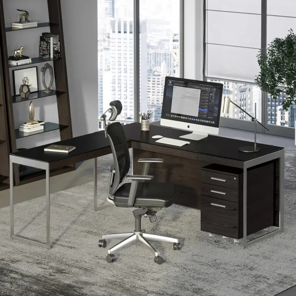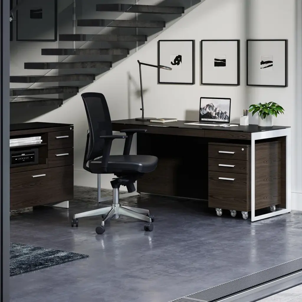 Featuring satin-etched glass work surfaces, and natural wood finishes, and boasting a host of innovative design features, BDI’s sequel office collection creates workspaces that are equal parts of organization and inspiration.