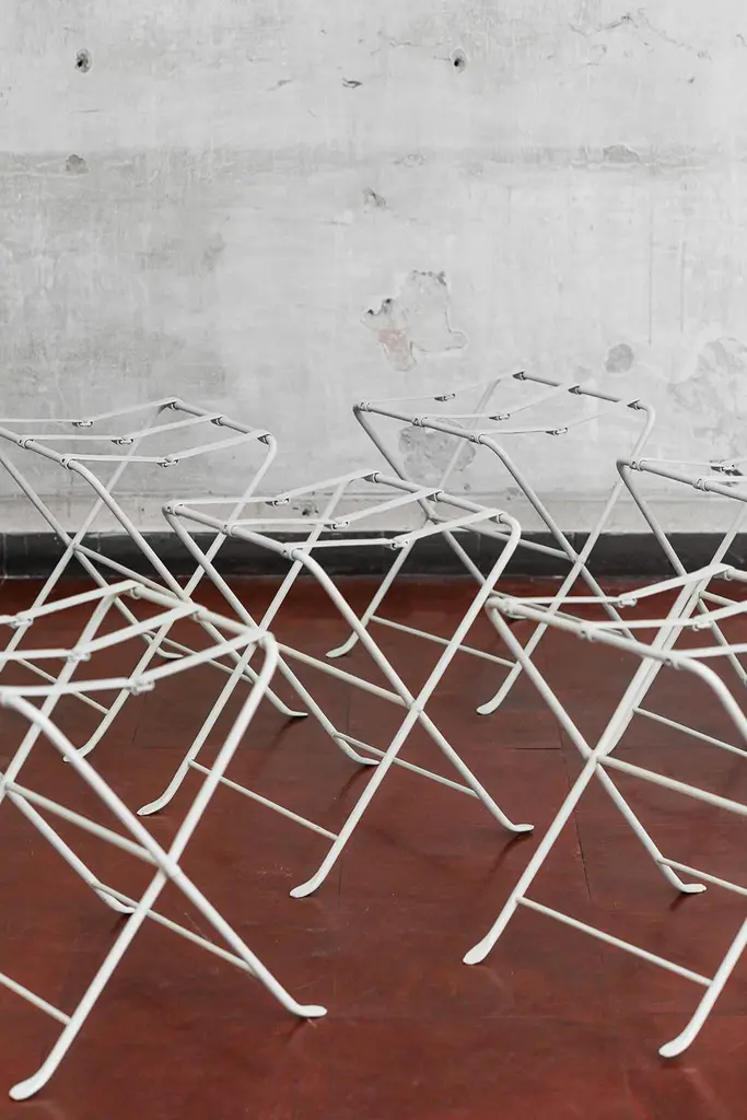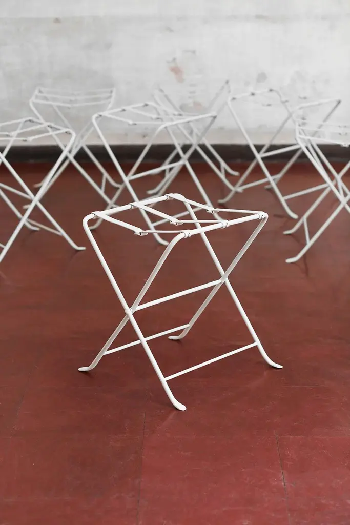 Set No.7 Foldable Mid-Century Luggage Racks (to arrange suitcases) in white enameled metalDimensions 40 W × 52 H × 46 D cmPrice is for single unit. 7 pieces available