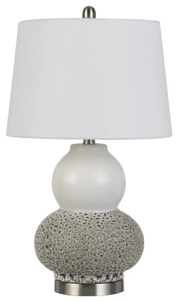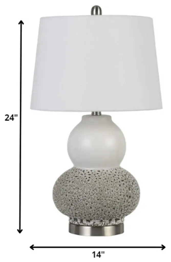 This set of two 24" silver metal two light desk table lamps with white globe shade is a great way to add some brightness to any corner of your home. The base of this lamp is made of silver metal. Includes a white fabric, globe shaped shade, making this a fashionable piece that will complement most any interior. This desk lamp provides ''task lighting'' that will illuminate your working area for reading or writing. High quality design makes this a great lamp for not only lighting, but accenting a room with style. Bring some lite and good vibes into your space with this updated and stylishly designed lamp. 24" H x 14" W x 14" D