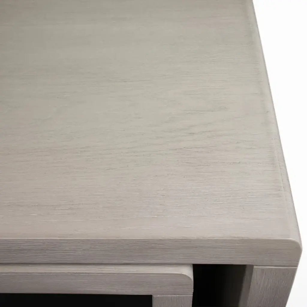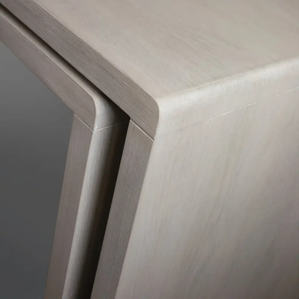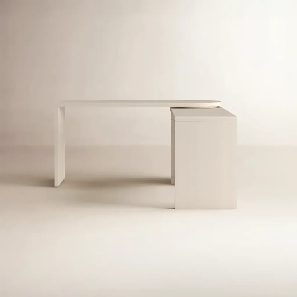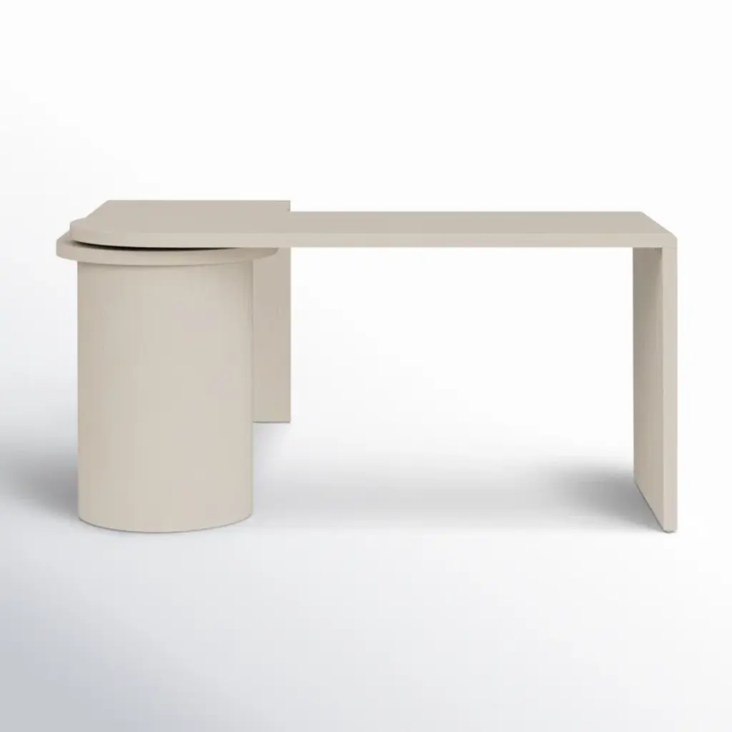 Our adjustable executive desk features an L-shaped design that's just right for any corner in your home. A wooden frame, pedestal base, and a white-sand finish lean into coastal cottage vibes. Plus, a cabinet nested within the central column post is the perfect spot for office supplies so you can leave the desktop free for your laptop and mug of coffee.