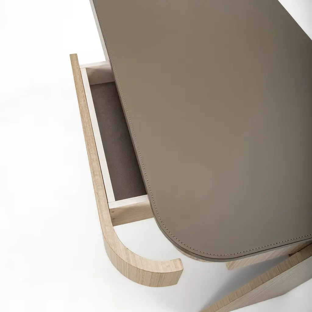 Shape 2-Drawer Leather & Eucalyptus Desk