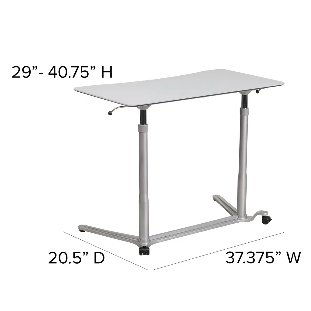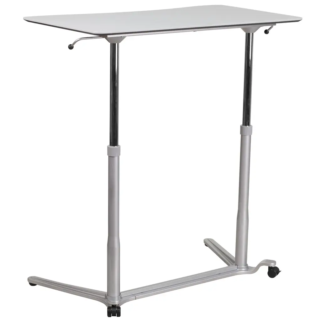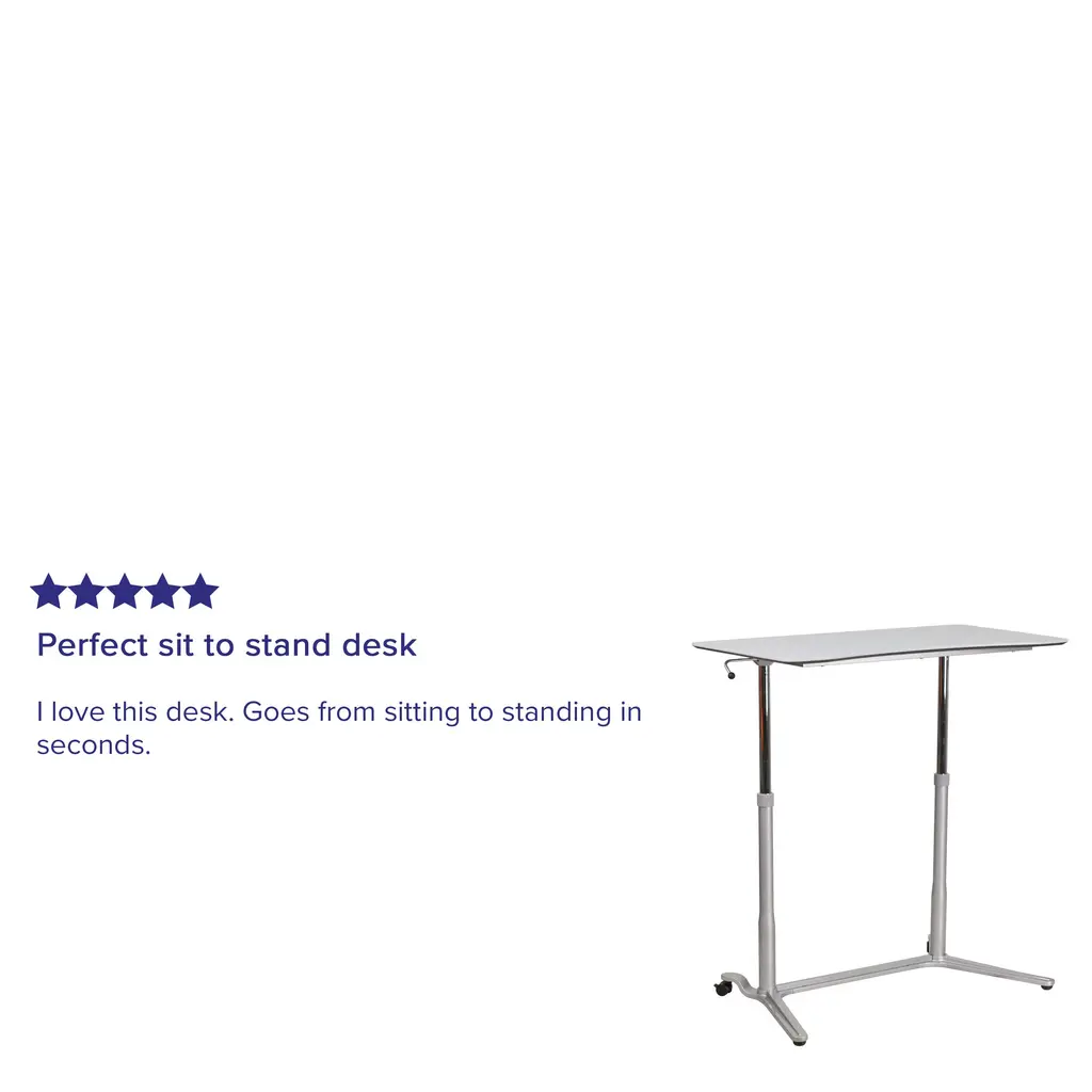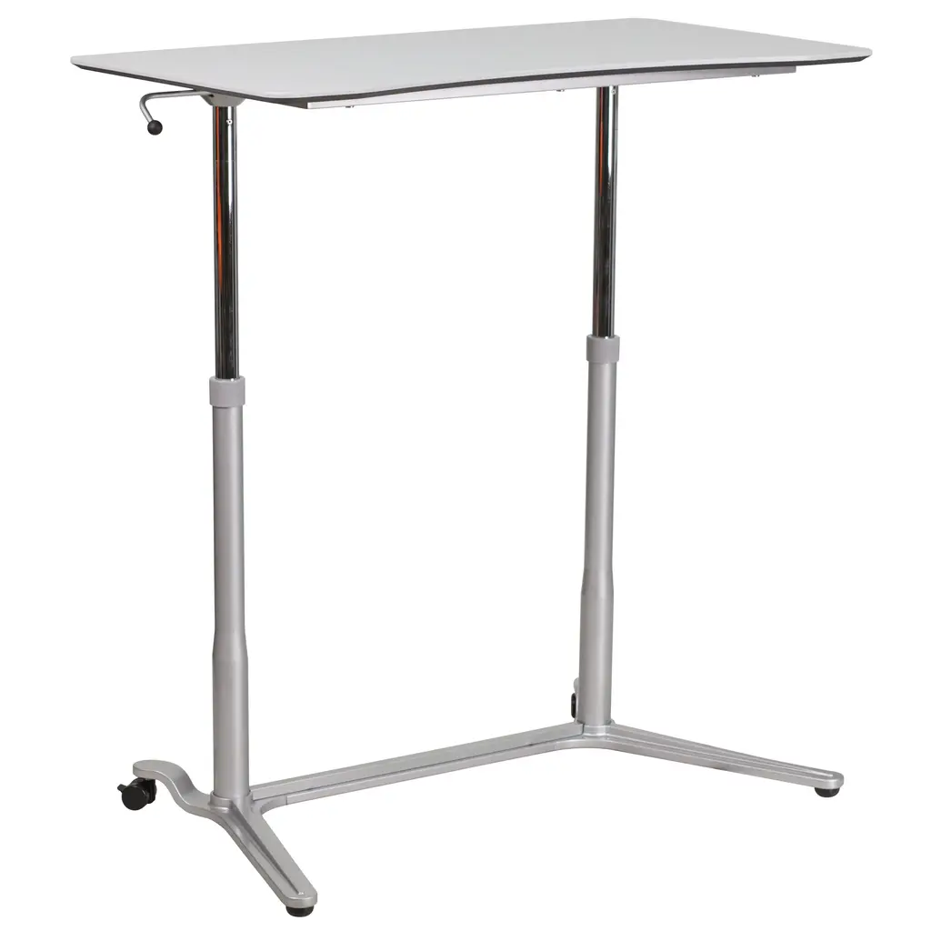 Are you choosing to live a healthier lifestyle? Start where you spend the most time, your office desk. This ergonomic standing desk gives you the option to not only work in a seated position but also while standing. We all know that sitting for hours is an unhealthy practice, but with long workdays it has become more common. Standing helps strengthen leg muscles, improves your balance and promotes healthy blood flow. Standing even burns more calories than sitting. The pneumatic levers on both sides of the table allow you to easily adjust the height with minimal effort. When preparing to work you should adjust the desk so the surface is at the most comfortable position for typing. The large surface make this desk suitable for laptops and desktop monitors. Since desktops are heavier than laptops, front adjustable glides were added to the front of the desk, while locking casters are added to the back legs, making this desk essentially mobile. Achieve a healthier way of working with this contemporary, versatile sit and stand computer desk.