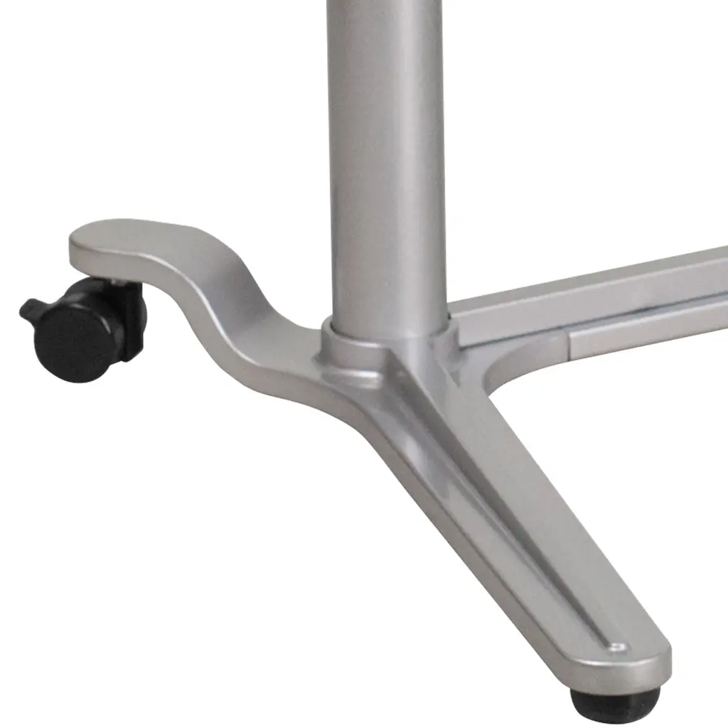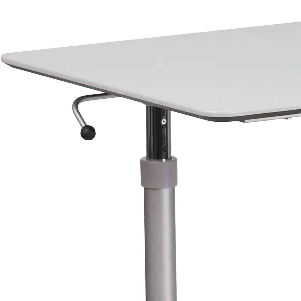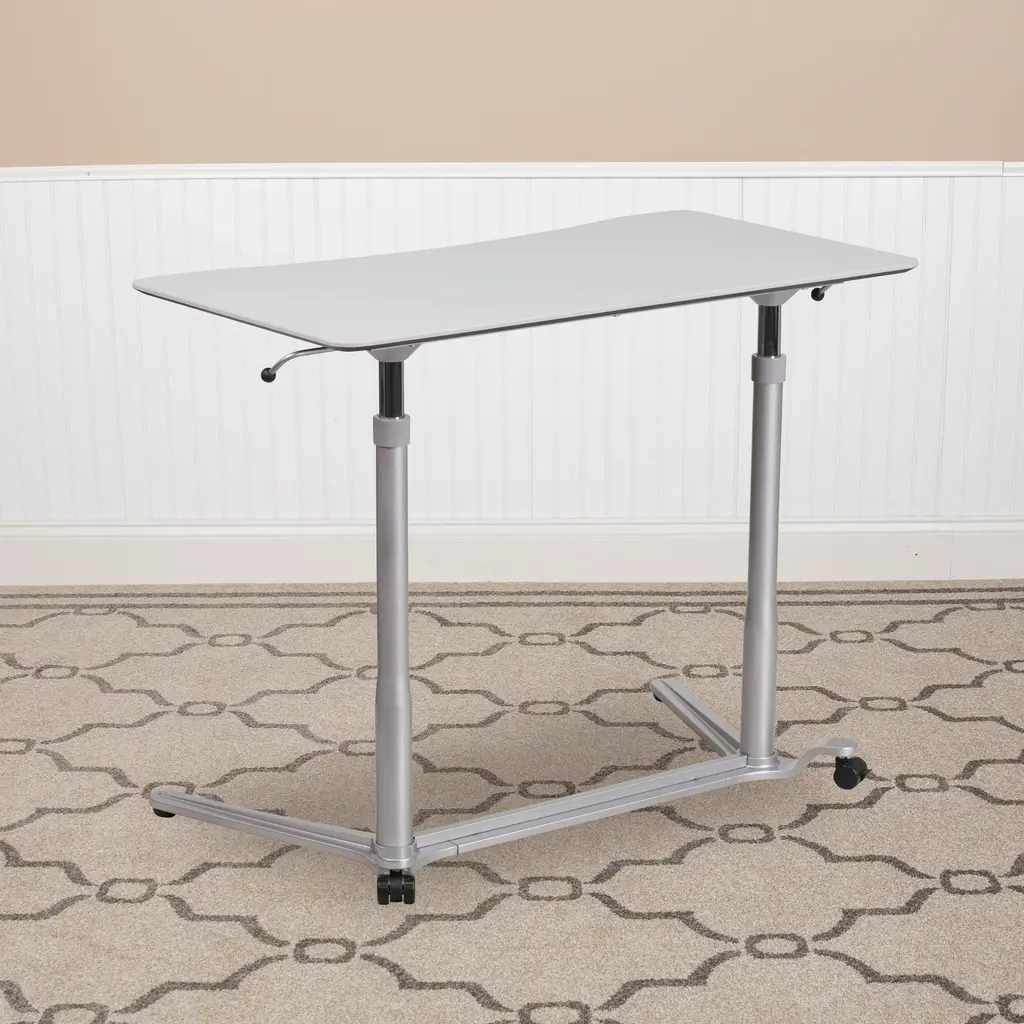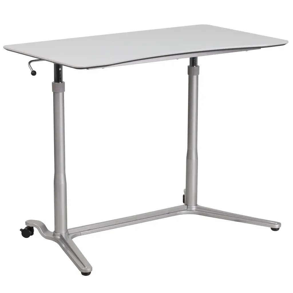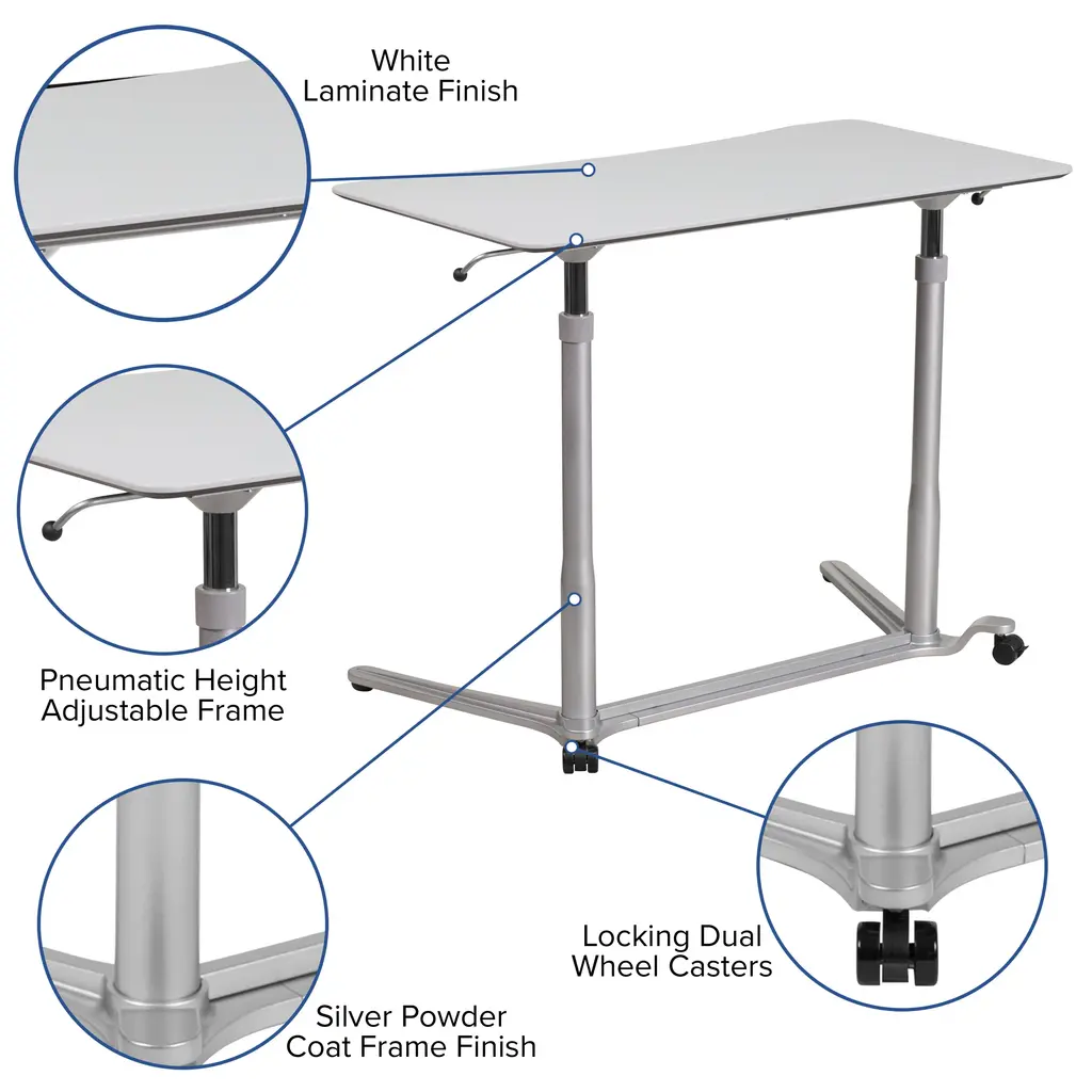 Are you choosing to live a healthier lifestyle? Start where you spend the most time, your office desk. This ergonomic standing desk gives you the option to not only work in a seated position but also while standing. We all know that sitting for hours is an unhealthy practice, but with long workdays it has become more common. Standing helps strengthen leg muscles, improves your balance and promotes healthy blood flow. Standing even burns more calories than sitting. The pneumatic levers on both sides of the table allow you to easily adjust the height with minimal effort. When preparing to work you should adjust the desk so the surface is at the most comfortable position for typing. The large surface make this desk suitable for laptops and desktop monitors. Since desktops are heavier than laptops, front adjustable glides were added to the front of the desk, while locking casters are added to the back legs, making this desk essentially mobile. Achieve a healthier way of working with this contemporary, versatile sit and stand computer desk.