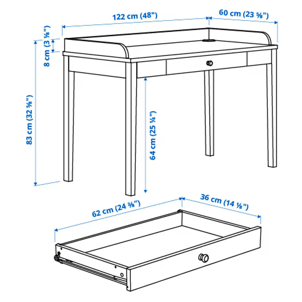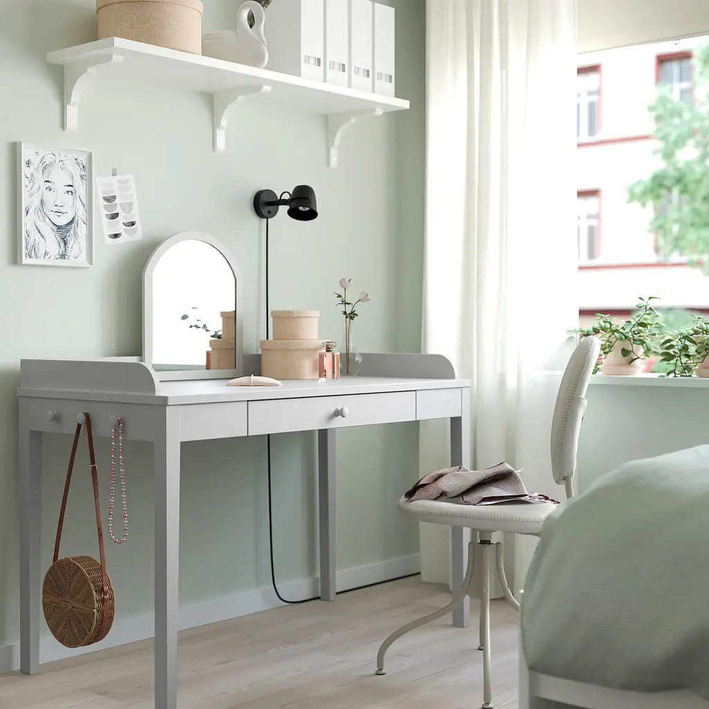 SMYGA Desk - light gray 48x23 5/8 ". The work area is big enough (23⅝x47¼) for both studying and doing arts and crafts, or to fit two computer monitors next to each other. The desk is wide enough to allow you to sit next to your child and help with homework.