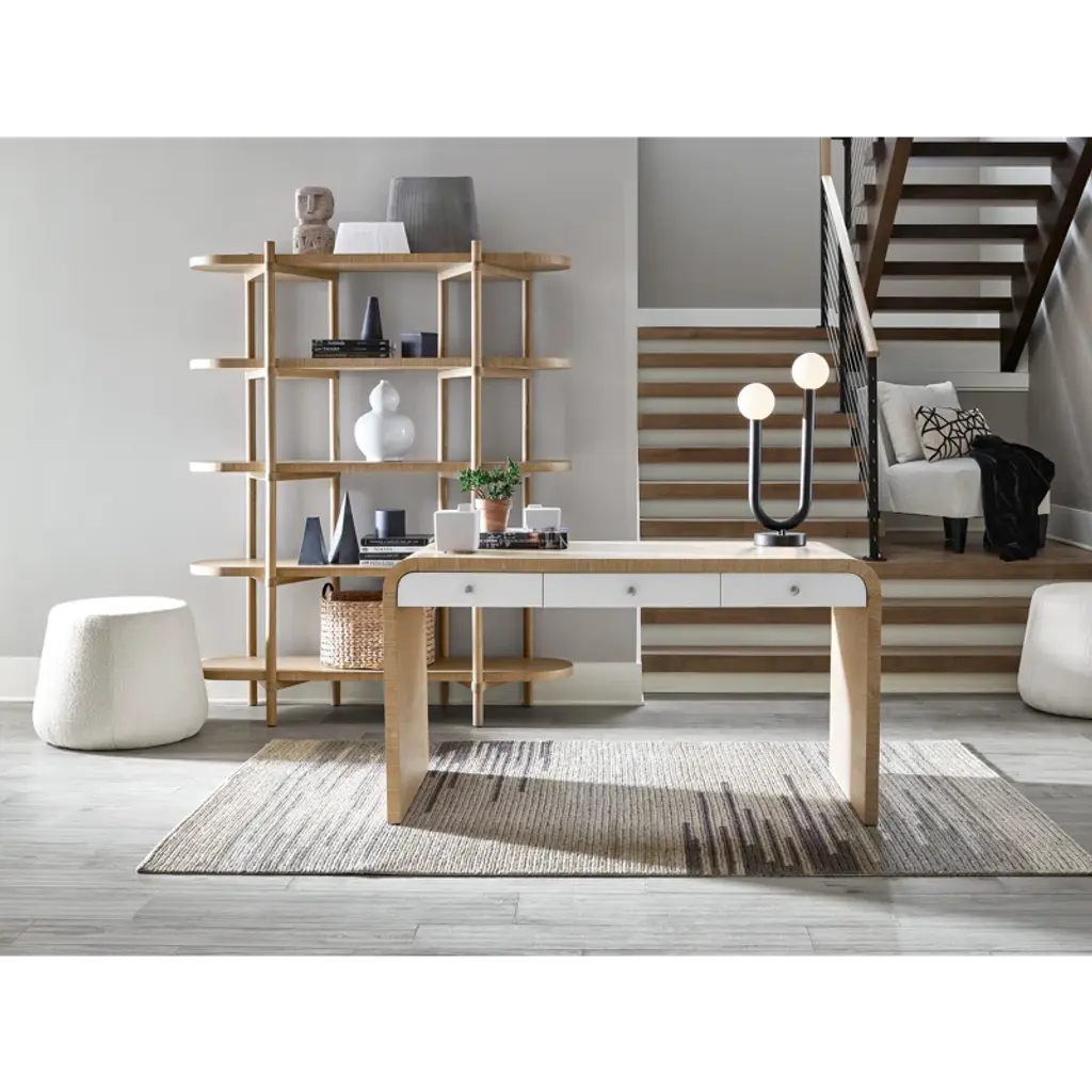 Introduce a natural flair to home office spaces with the Writing Desk, a staple accent piece showcasing three succinct drawers encased by a rounded, oak-finished frame.