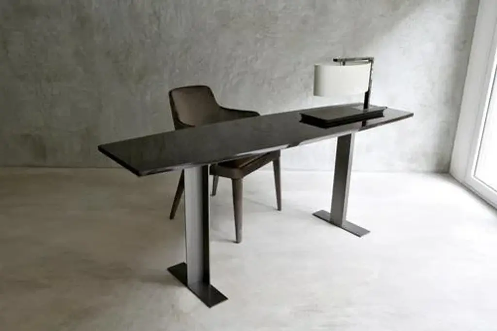 Spitfire matt dark ebony top and matt white structure desk by casa casati dimensions: d 50 x w 180 x h 74 cm. Materials: matt dark ebony, iron, and mdf.