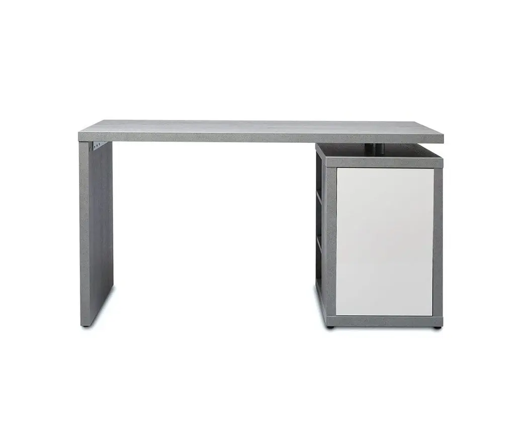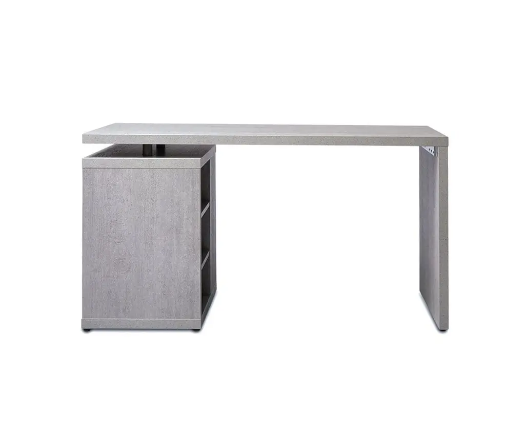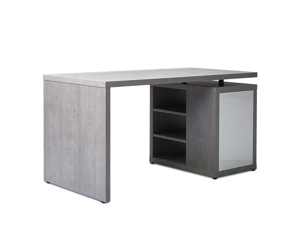 Anchor your workspace with the stylish and functional Sten 55" Desk with storage return. The main surface is shaped by the straight, clean lines that lead to the prominent return with two open shelves and three deep drawers. The overall L-shape of this piece allows it to fit nicely into a corner or stand handsomely in