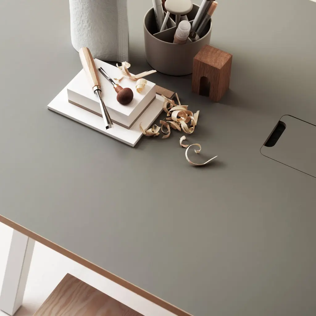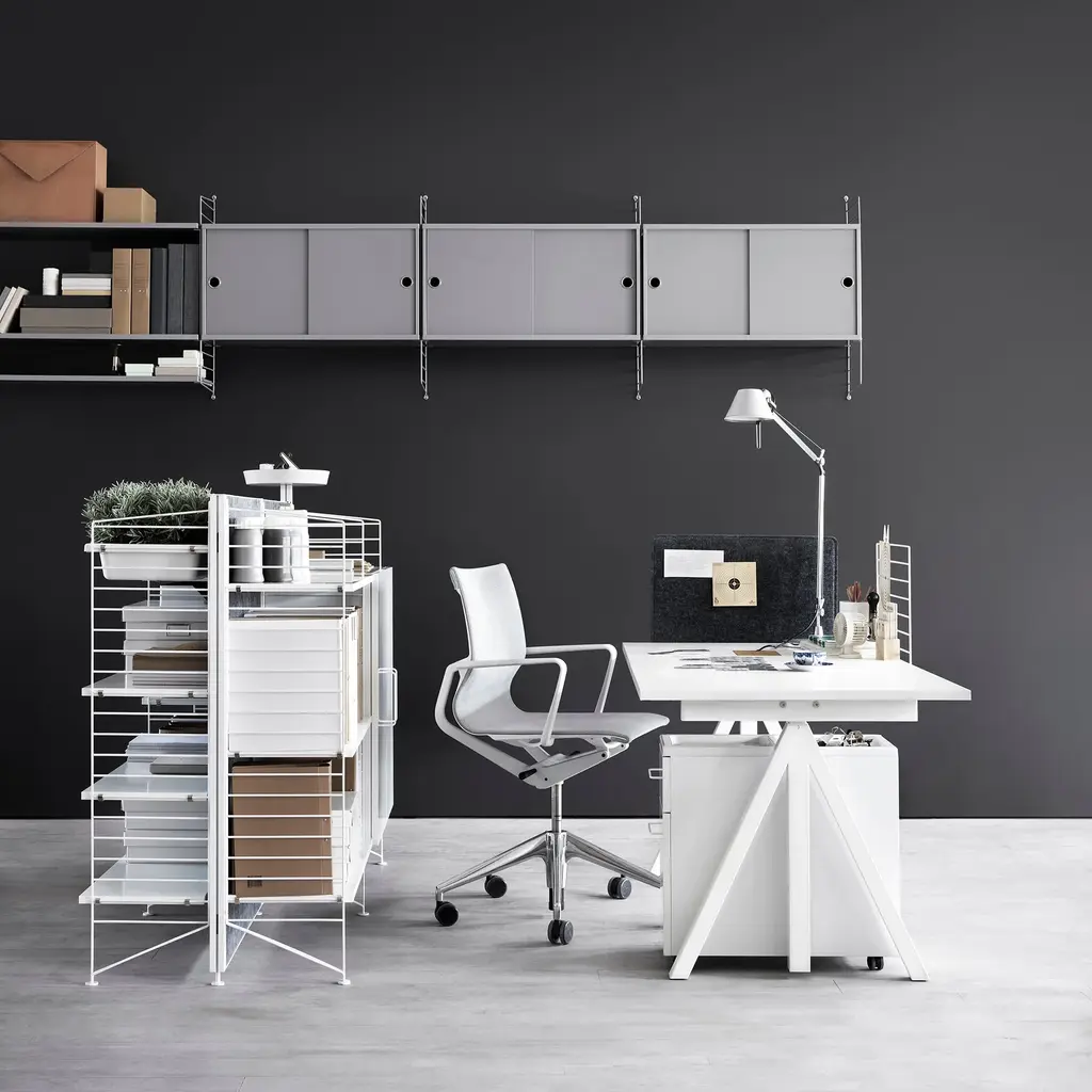 If sitting is the new smoking, where do we stand? The height-adjustable desk from Swedish design house String mixes it up during the course of a shift, and all at the touch of a button. Unlike many other desks in this category, String's maintains the signature visually light profile of the rest of this modular line, in this case due to the slim metal tubes that make up the framework. An adjustment range between 715 and 1185mm means the desk height fits a wide range of standing adults. Ample space under the desk, plus the option of cable routing and a small table-top compartment for passing device cables. Ample space under the desk, plus a plethora of attachments and accessories to optimize a clutter-free, yet functional zone, makes this one elegant work horse for office for home use. What's more, the desk comes in 3 sizes, the larger version lending itself to more of a collective or conference application. As the longest-running resource for this Swedish heritage brand in North America, A+R offers the entire String collection. (And p.s., recent studies indicate that it's not so much sitting but a lack of physical exercise that contributes to health issues. So split the time you sit and stand at your desk—and don't skip those all-critical brisk walks at break time!).