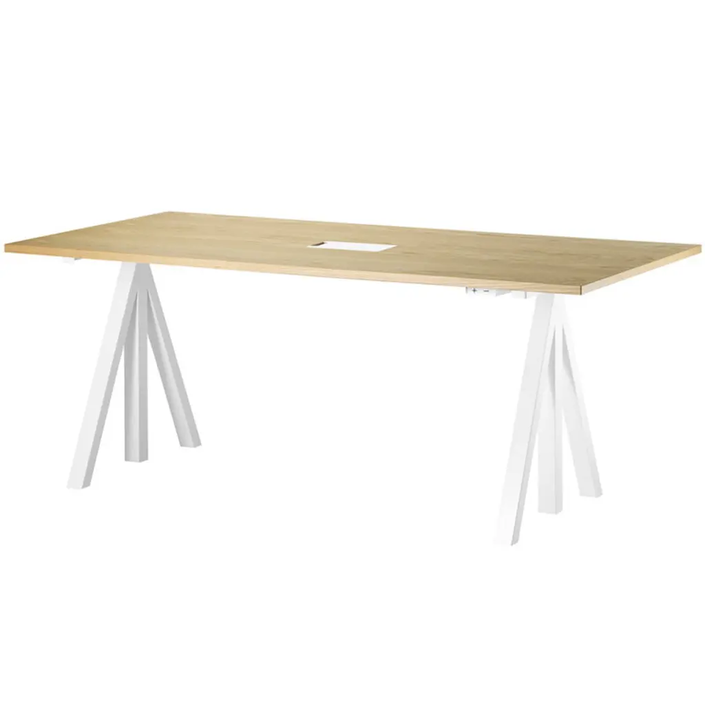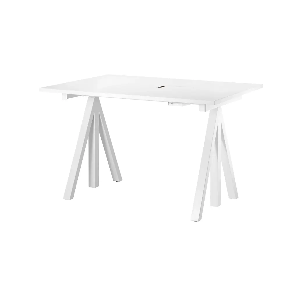 If sitting is the new smoking, where do we stand? The height-adjustable desk from Swedish design house String mixes it up during the course of a shift, and all at the touch of a button. Unlike many other desks in this category, String's maintains the signature visually light profile of the rest of this modular line, in this case due to the slim metal tubes that make up the framework. An adjustment range between 715 and 1185mm means the desk height fits a wide range of standing adults. Ample space under the desk, plus the option of cable routing and a small table-top compartment for passing device cables. Ample space under the desk, plus a plethora of attachments and accessories to optimize a clutter-free, yet functional zone, makes this one elegant work horse for office for home use. What's more, the desk comes in 3 sizes, the larger version lending itself to more of a collective or conference application. As the longest-running resource for this Swedish heritage brand in North America, A+R offers the entire String collection. (And p.s., recent studies indicate that it's not so much sitting but a lack of physical exercise that contributes to health issues. So split the time you sit and stand at your desk—and don't skip those all-critical brisk walks at break time!).