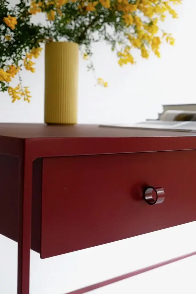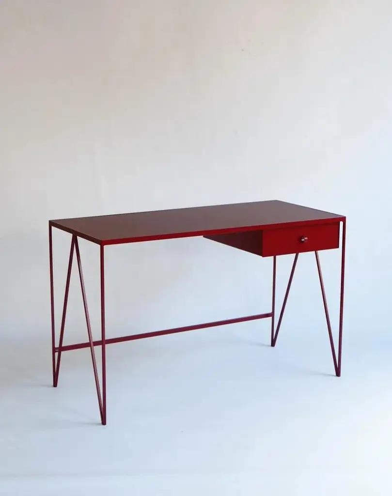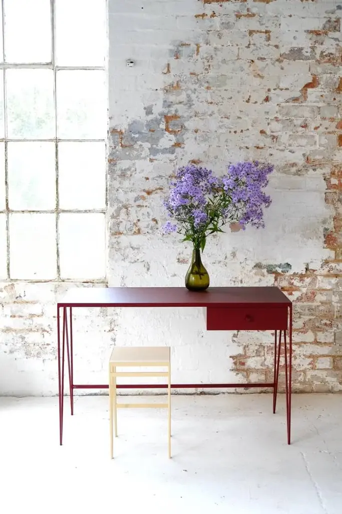 Study Desk In Beetroot With A Drawer In Natural Linoleum From &New