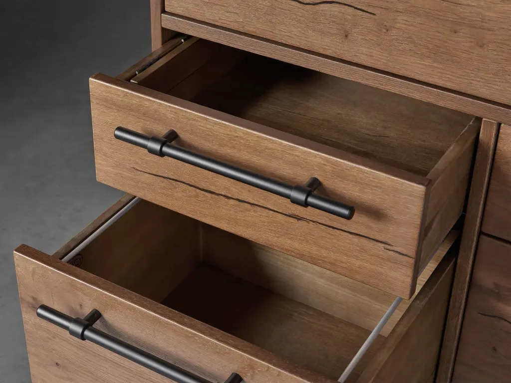 Functional design at its best, our Sullivan Collection is artisan-crafted to frame your space in a grounded, contemporary aesthetic. Built by hand using sustainably sourced, reclaimed, European oak wood complemented by oversized iron hardware, each hand-stained surface features a smooth, contemporary finish that accentuates the natural character of the salvaged wood. This office collection perfectly balance practicality, craftsmanship, and chic styling with workspace and storage solutions to suit your everyday needs.