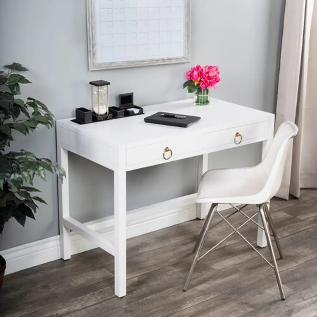 Convert any nook or corner into a home office with this compact two-drawer desk. Its clean, spare lines make it a welcome addition to traditional and contemporary rooms alike.