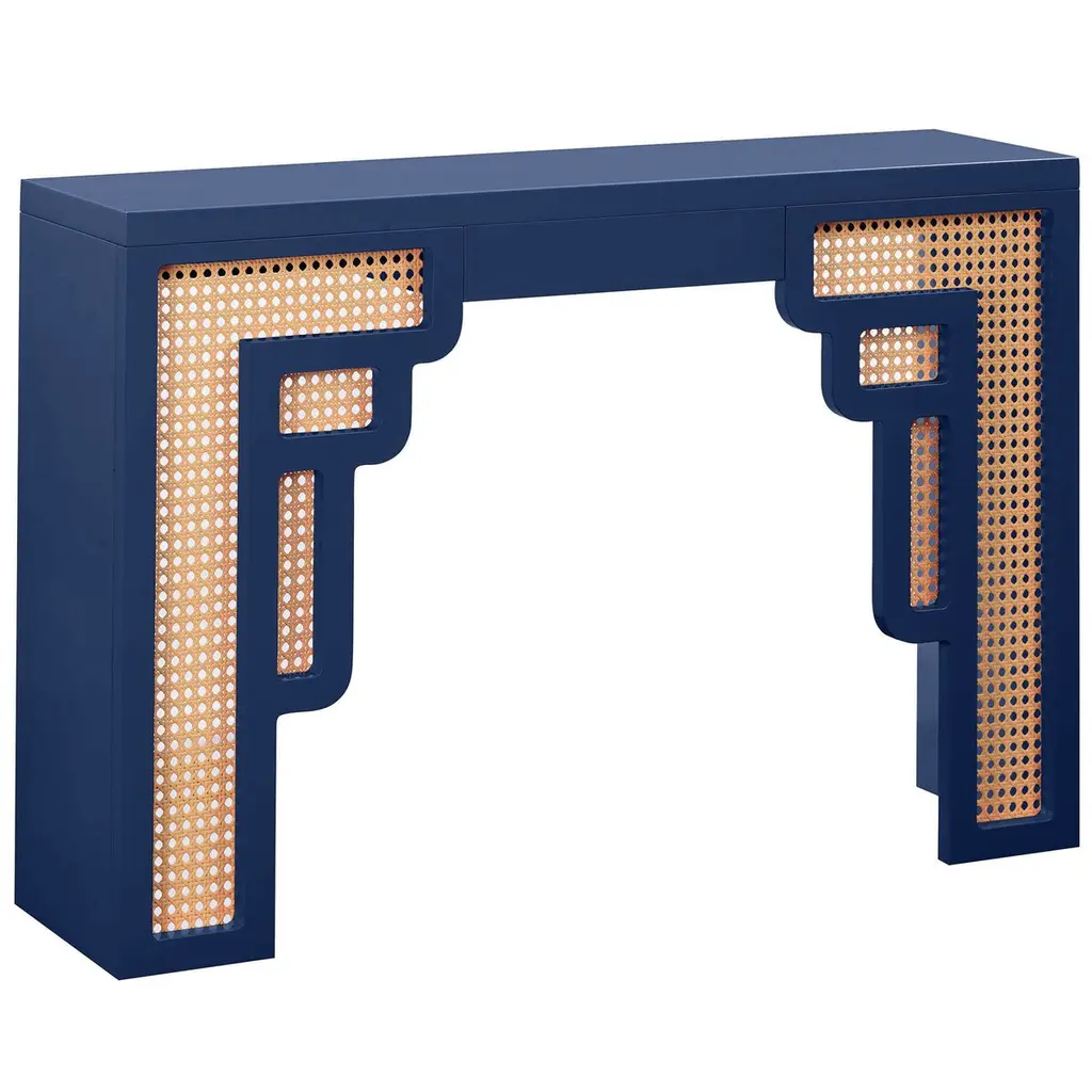 Inspired by the Art Moderne style, the Suzie Desk alludes to Palm Springs art-deco design through its bold colors and curvaceous form. This wooden desk features a soft close drawer for practicality; while its rounded edges and woven rattan details add a playful twist. The Suzie will cement itself as the perfect balance between contemporary living with a touch of glamour in your space!