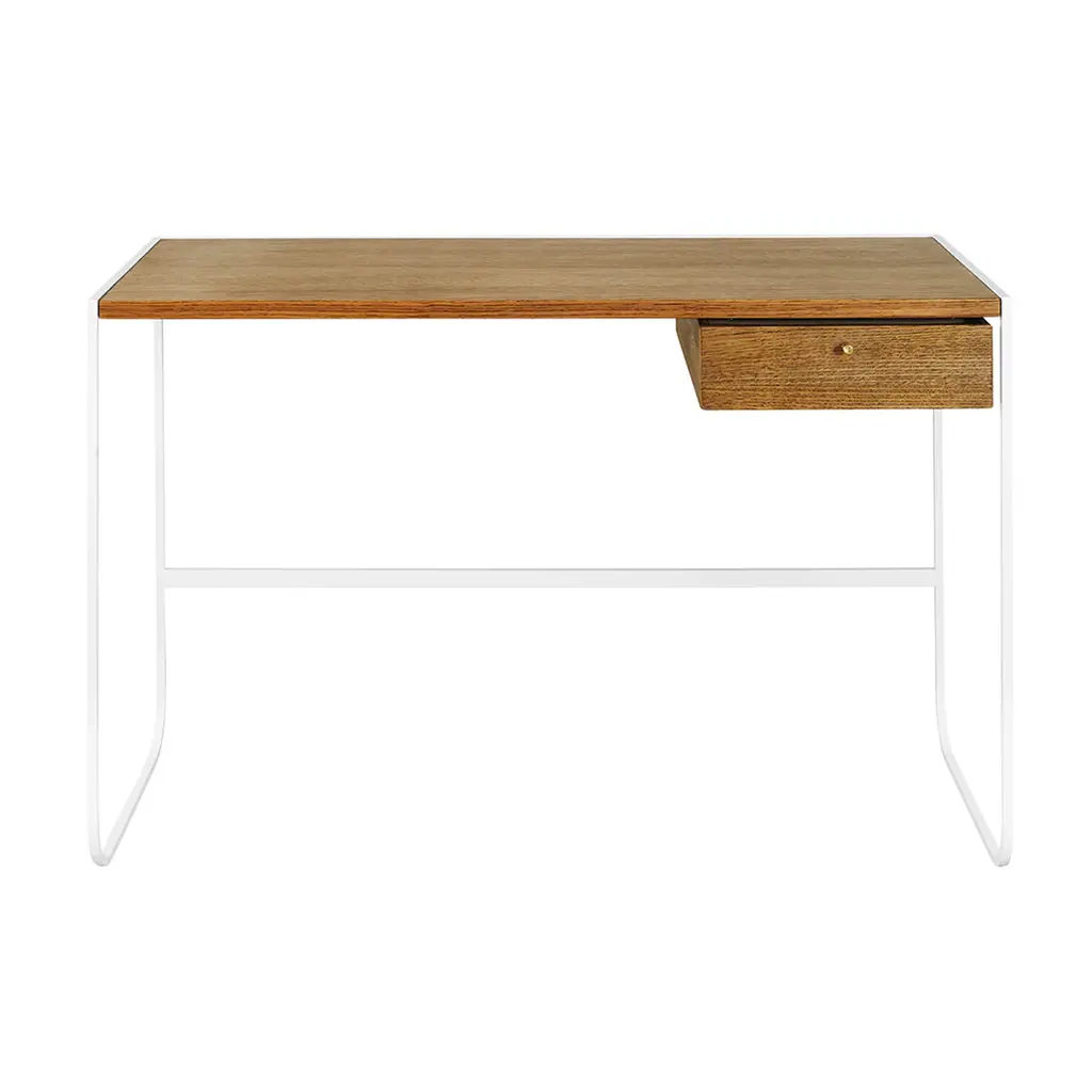 With the Tati series, Mats Broberg and Johan Ridderstråle charmed the design world and this small-scale desk follows that appealing template. Kitted out with a single drawer and a lacquered metal frame, the desk easily fits into a bedroom, small home office or even a hotel room. Stockholm-based brand Asplund offers numerous variations on the theme, with an array of frame colors, two drawer finishes and the desktop in laminate, a lacquered surface or fine leather.