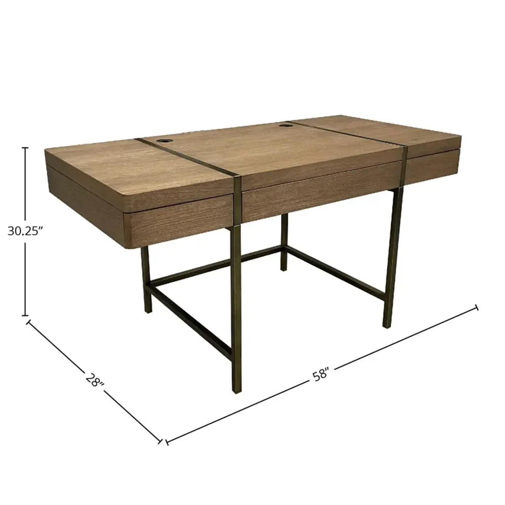 Tatum Aurora 58" Wide Writing Desk With Usb, Latte