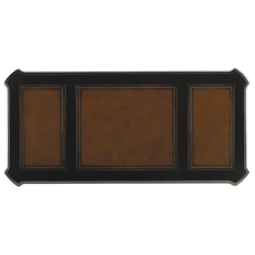 With a hunt country flair and pedigreed design details like curved legs with scroll motifs and carved leather inset panels with nailhead trim, the Telluride 66-inch Writing Desk offers a stylish and functional work-from-home solution. Crafted of Cherry Veneers with leather and nailhead trim, the black paint finish with reddish-brown rub-through presents a rich menswear look. There’s a center drawer with a drop-front for the keyboard and two utility drawers with removable dividers. Telluride's black paint finish with reddish brown rub-through, carved leather panels, and nailhead trim give this collection a rich masculine look.