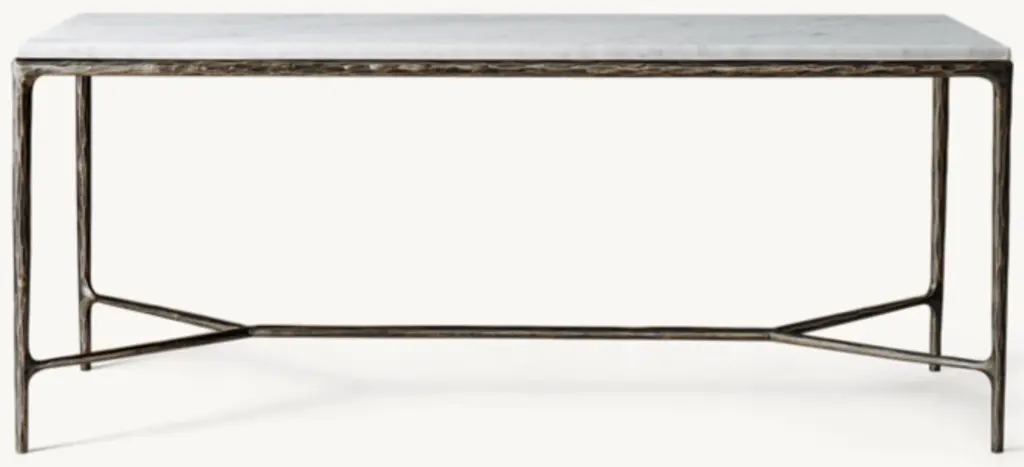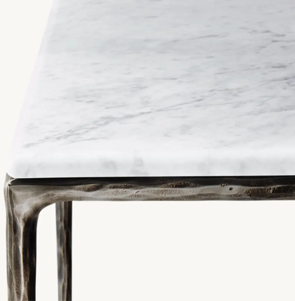 Inspired by the sculptural works of Salvador Dalí and Diego Giacometti, our collection by Julie Lawrence merges the rustic sensibility of hand-forged solid brass or solid stainless steel with cool marble. Employing an ancient fabrication process, artisans hand hammer the metal bars to reveal an alive, imperfect and organic texture. The pounded, tapered silhouettes are a rich counterpoint to the smooth, honed stone.SHOP THE ENTIRE COLLECTION