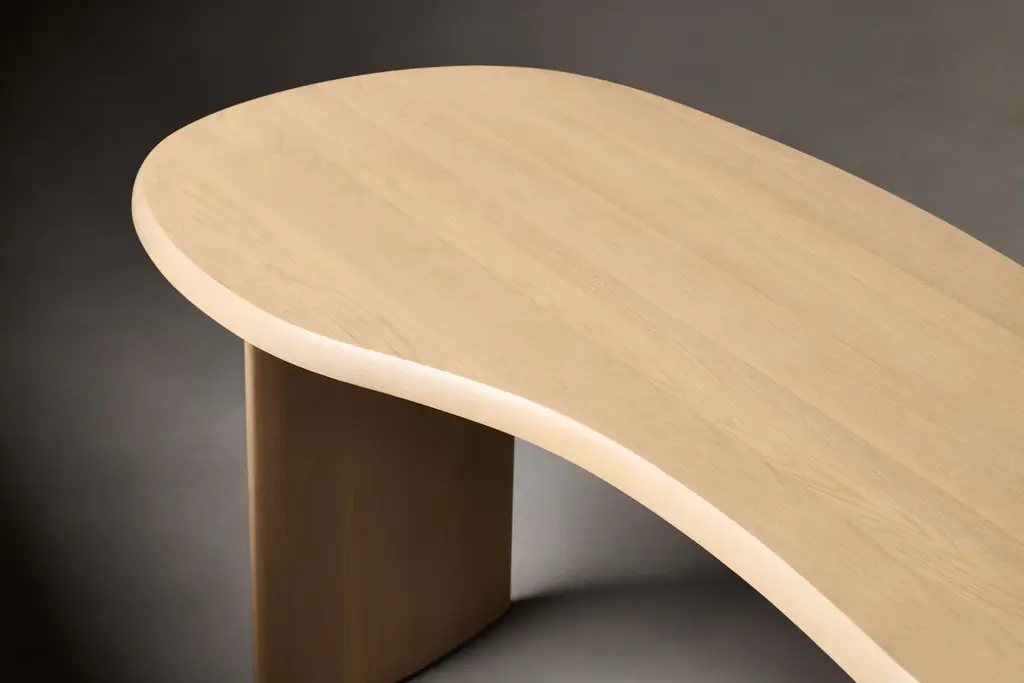 The Beekman Desk is a work of exquisite artistry for the office or library. It has a freeform tabletop with a beveled edge and sits atop asymmetric legs that offer visual intrigue. Handcrafted at a family-owned workroom in upstate New York.