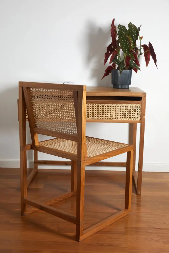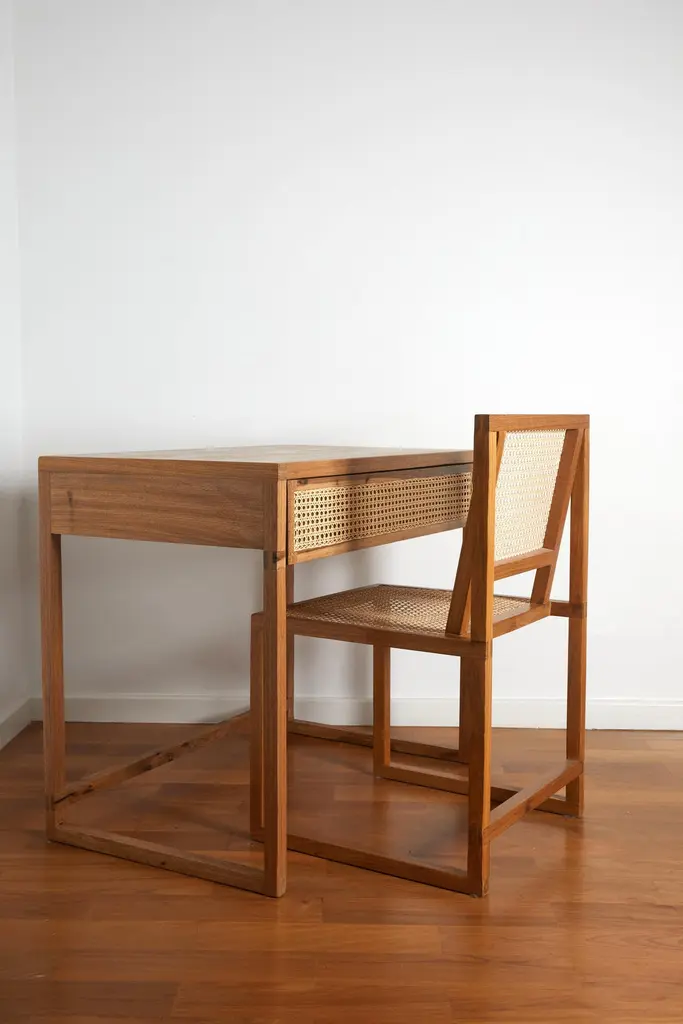 The Square Desk was inspired by the design of Brazilian modern furniture from the 1950s and 1960s, featuring straight lines and Indian straw weaving. It's delicate and highly comfortable for everyday use, seamlessly blending functionality and elegance. Crafted from solid freijó wood and adorned with a natural Indian straw drawer, it can also be produced in jequitibá or sucupira wood. As they are natural materials, wood, straw and leather may have different tones and textures than those shown in the photos.About the designer:Amilcar Oliveira hails from São Paulo, the capital city. He studied Radio and TV at ECA-USP and worked as a director at production companies like Sentimental Filmes and Your Mamma. Currently, he's part of the directorial roster at Mixer. In parallel, he studied carpentry at the Cosi de Legno school under Piero Calò, carrying on the teachings he received from his father and grandfather, who were both carpenters deeply passionate about this craft. Amidst the pandemic, he created his debut piece, the Square Armchair, and launched am.o, an artisanal design brand featuring his creations.