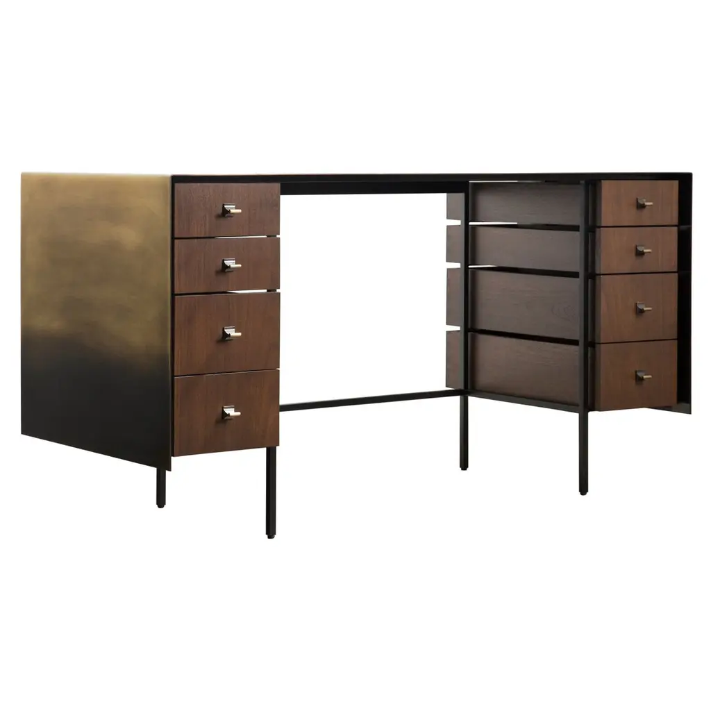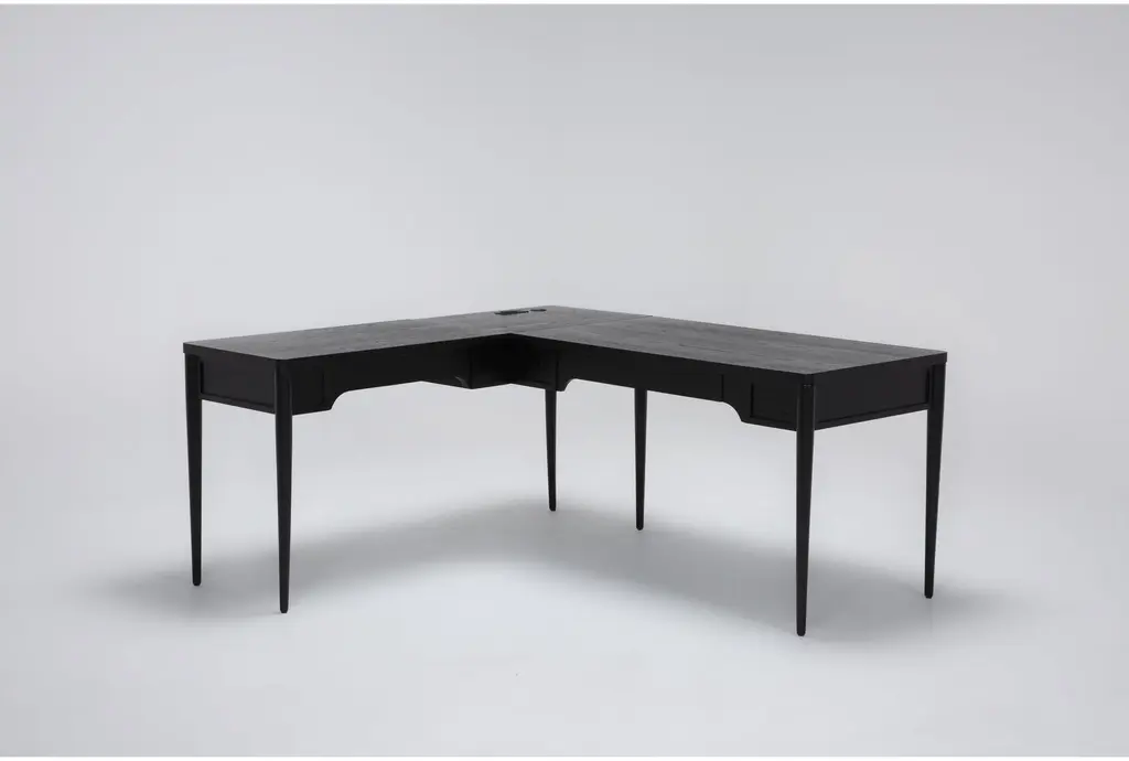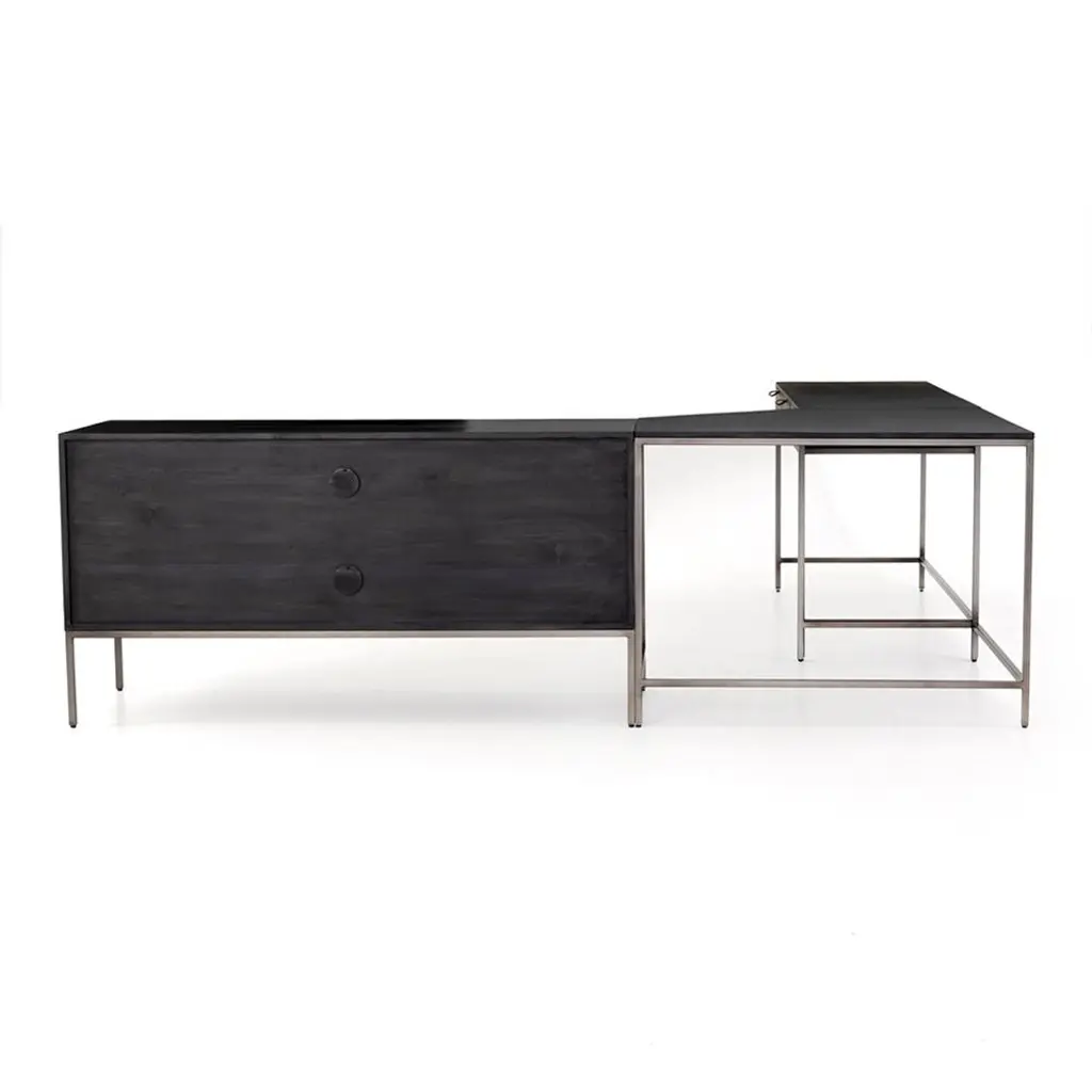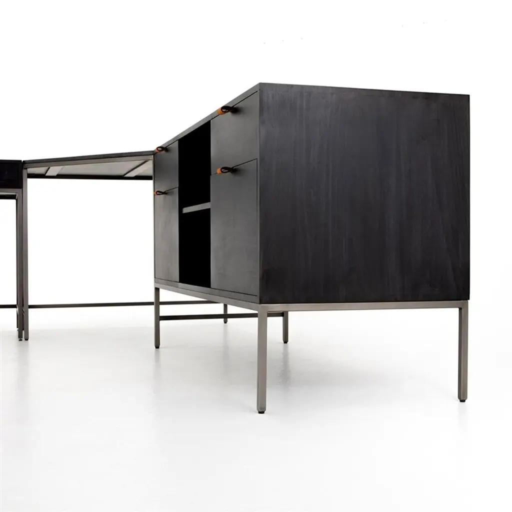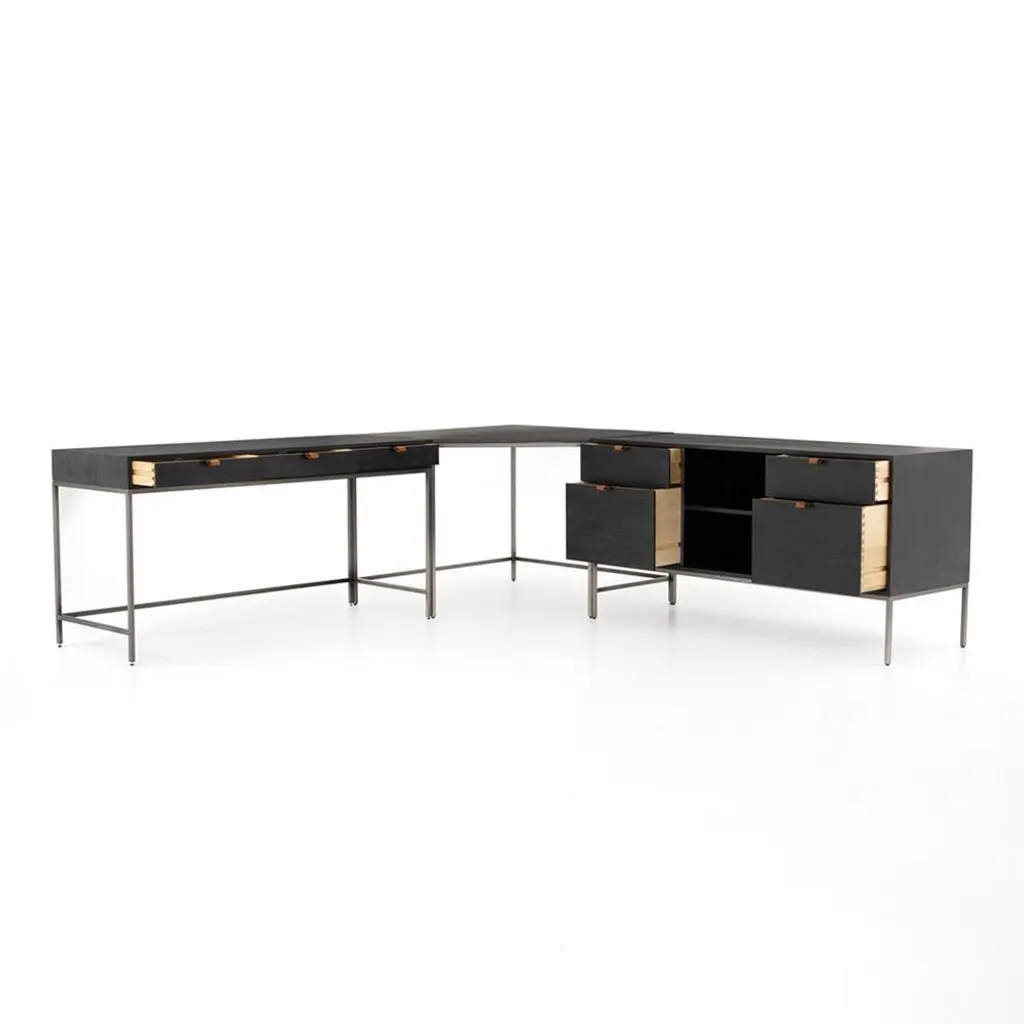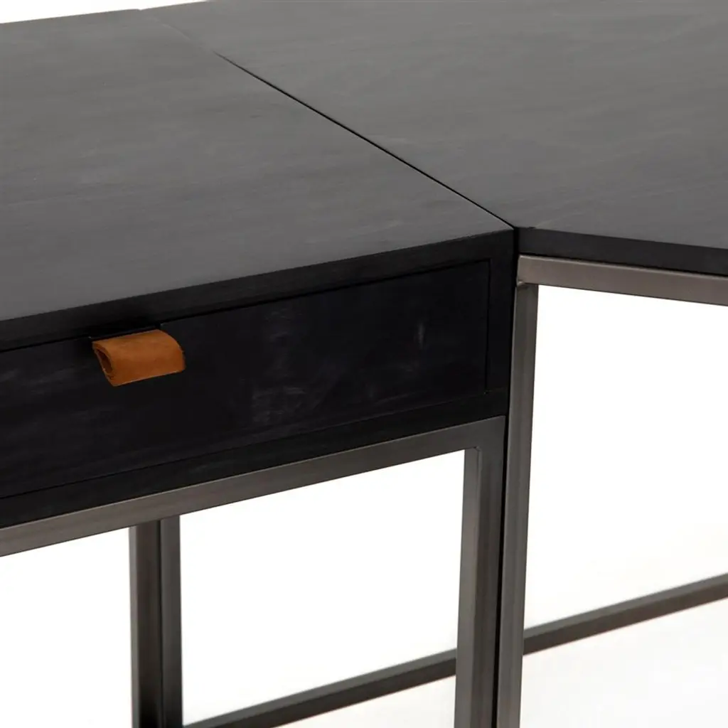 Theodore Industrial Loft Black Wood Iron Corner Desk Set