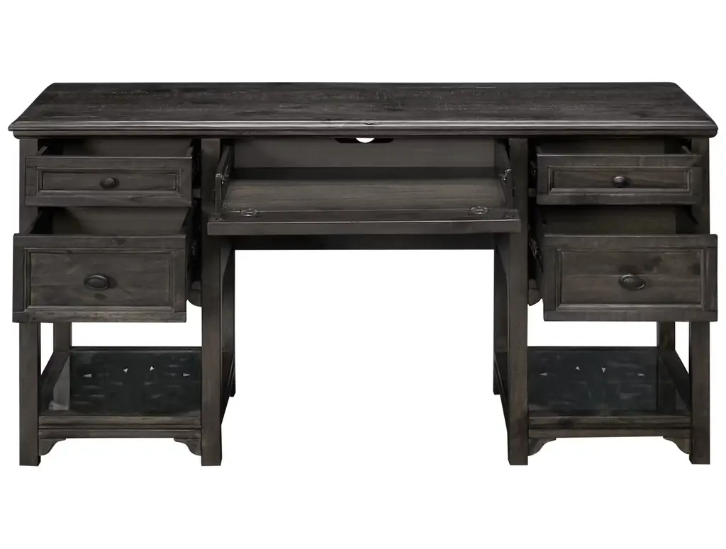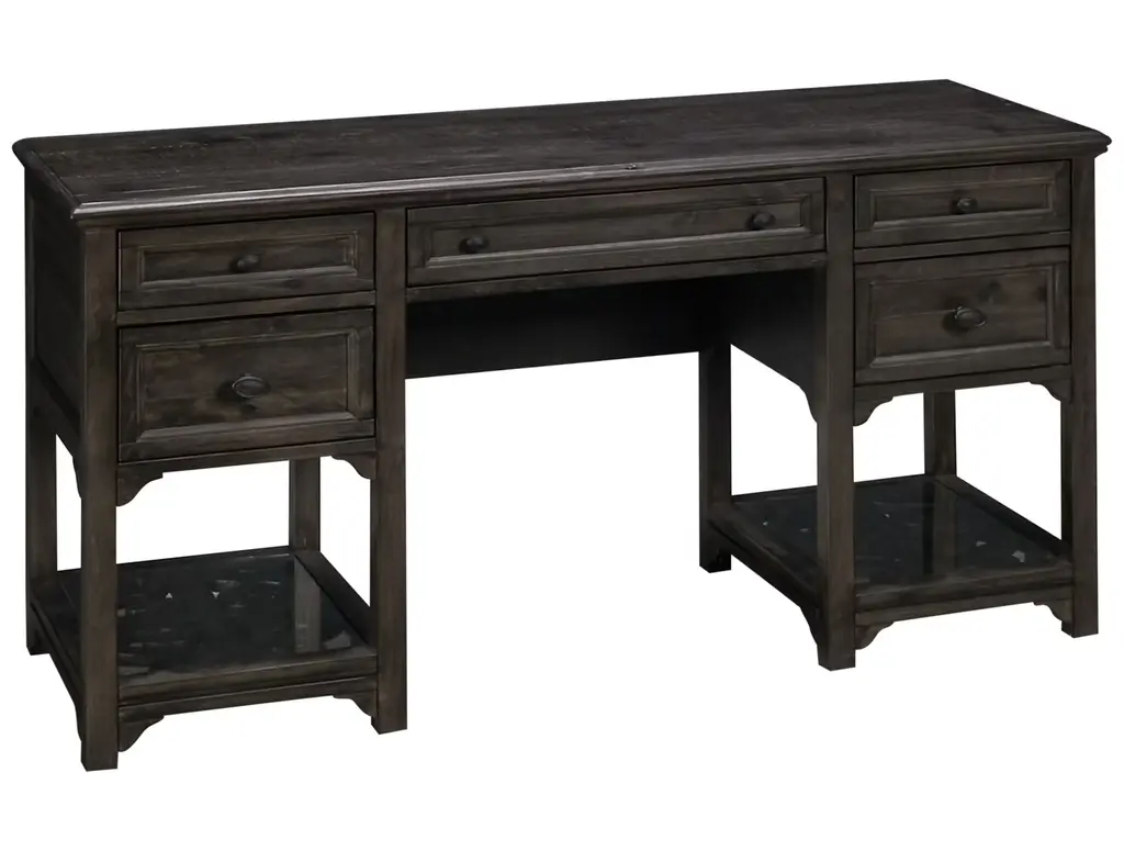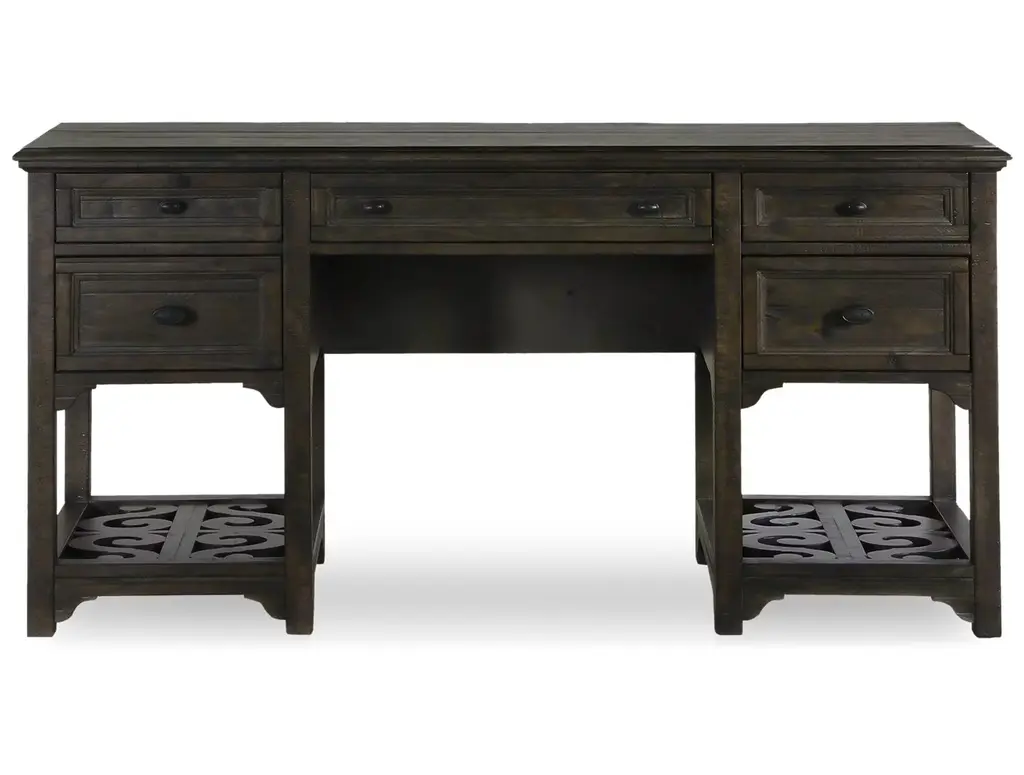 Blending Gustavian elegance with charm, the Magnussen Home Furnishing Tinley Park Desk will refresh your home office with its exquisite carved details. Complete with four drawers, a keyboard cupboard, and two open shelves large enough to hold a small printer, this piece is sure to keep you organized. Available in other finishes.