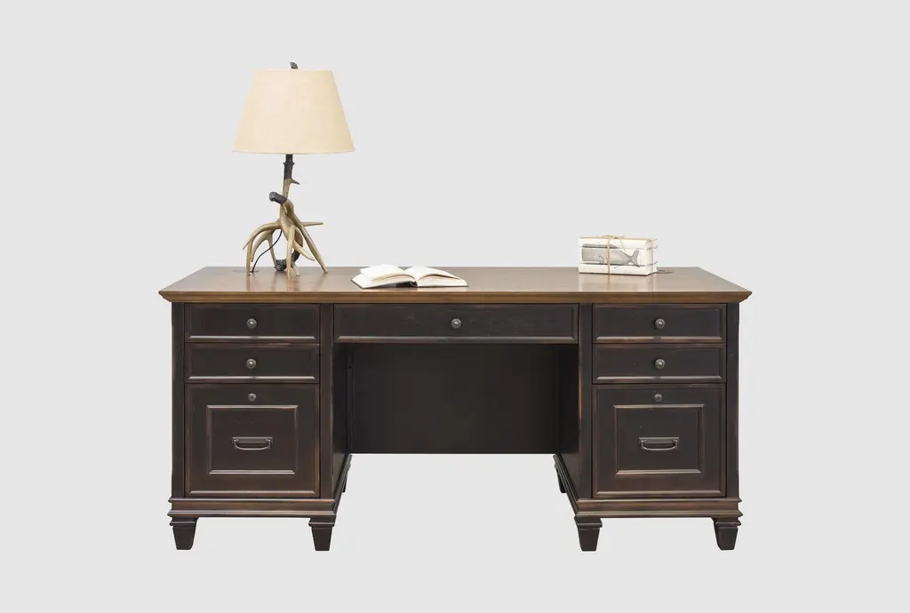 This exquisite Tolland 70" Black Pedestal Desk is the perfect addition to any traditional office space, crafted from high-quality wood to ensure both durability and style. With ample storage and drawers included, this desk is both functional and beautiful.