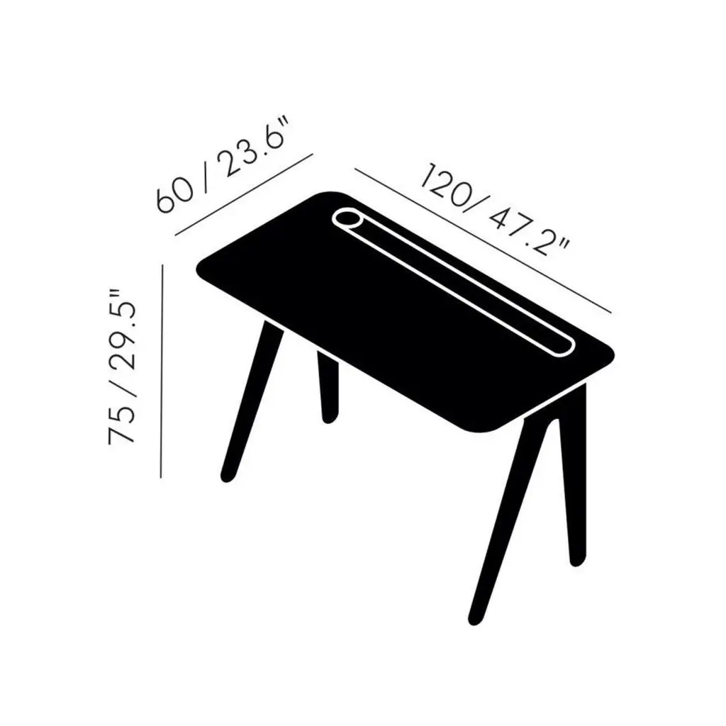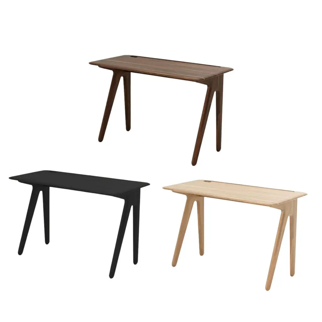 Tom Dixon 'Slab' Solid Wood Desk in Black Stained OakExecuted in solid FSC-certified oak, Tom Dixon's Slab desk is constructed in simple geometric shapes that celebrate the natural beauty of wood. Originally designed in 2016, each piece has generous proportions, solid materiality and is softened with a gentle radius edge. The wood's surface is deeply brushed to expose its natural grain and finished with a matte lacquer. Inspired by the archetypical Victorian school desk, this contemporary lightweight yet substantial work station is equally comfortable as a hotel room desk or a dressing table. The traditional inkwell space is transformed into a cable management hole, and a deeply machined groove has been added for pens and accessories.Price is per item. Available in unlimited quantities. Natural, fumed, or black finish. This listing is for the black stained oak finish. In stock and available now. Currently ships in 1-2 weeks. Out of stock lead time can add 4-6 weeks or longer. Please note that lead times and availability are subject to change without notice. Please contact us for current lead time prior to placing time-sensitive orders.Made to order. All sales final.