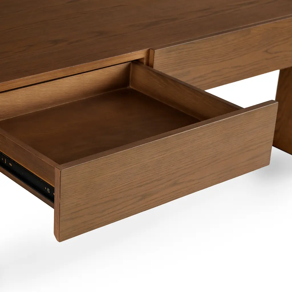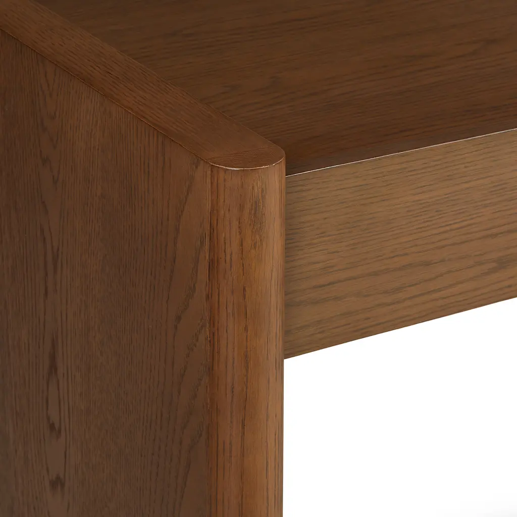 The Torme is characterized by simple lines and thoughtful details. The softly rounded shelves are subtle but impactful. Soft-close drawers with hidden pulls make the Torme desk a functional, beautiful addition to any space (but especially moody Norwegian studies).