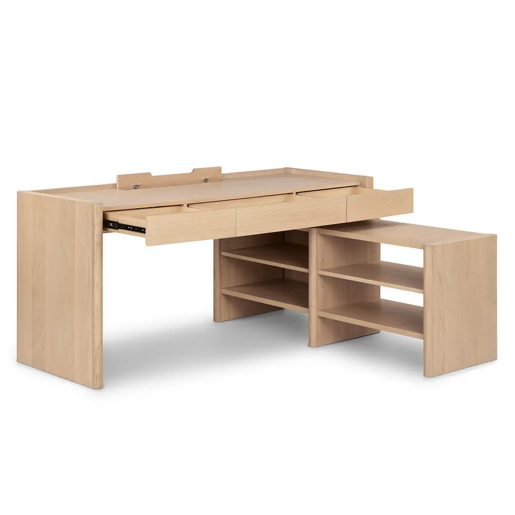 Make that statement Scandi office you've always dreamed of. Made by combining two best-selling pieces, the Torme L-Shaped desk's thoughtful details and clean style make for a downright inspirational work station. Generous open storage and soft-close drawers with hidden pulls make it as pleasant to use as it is to look at. You won't believe how much work you’ll get done.