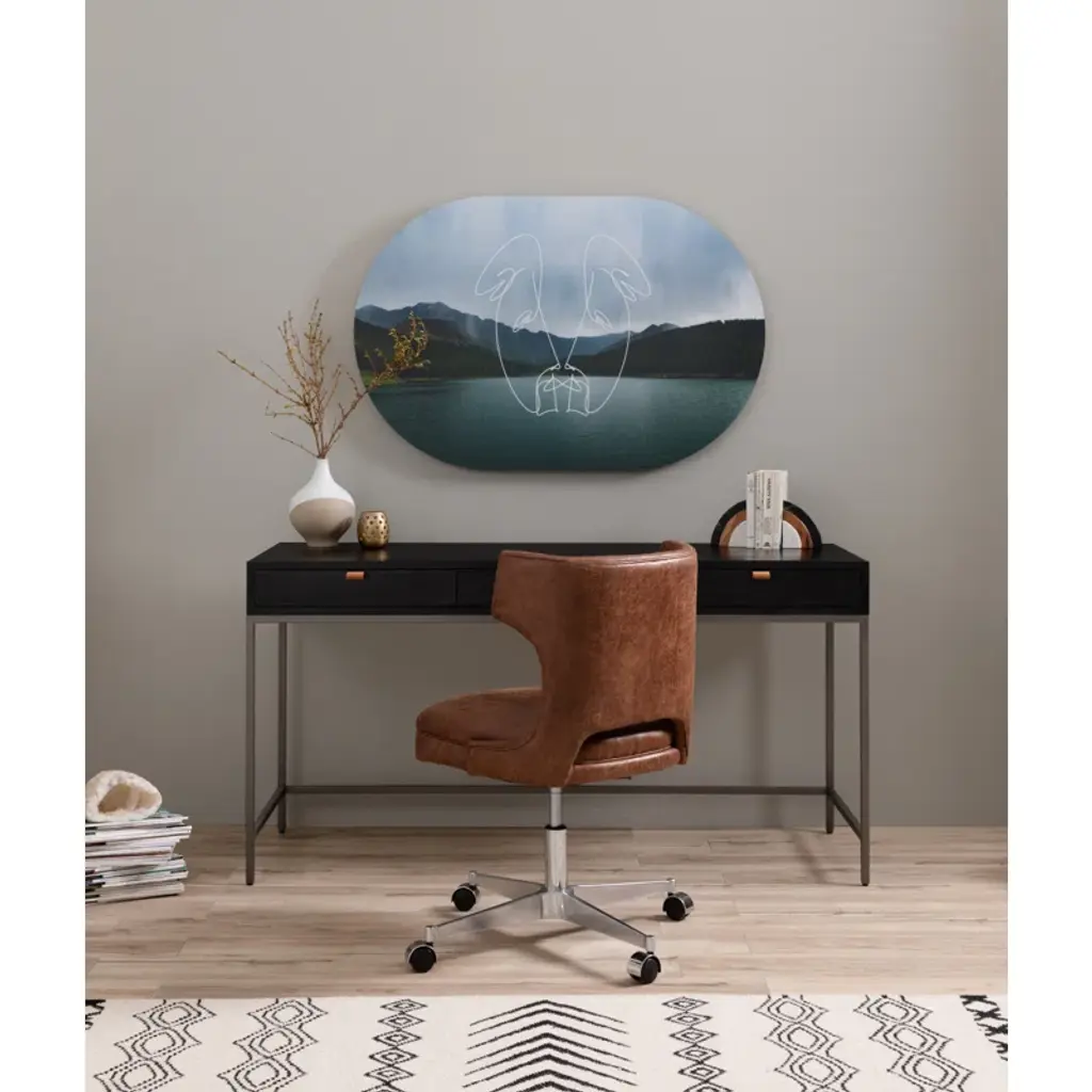 Inspired by a clean mid-century design, poplar offers generous desk storage by way of three spacious drawers, with a fully finished back plus metal-secured leather pulls for an element of surprise. Great solo or paired with a matching corner desk, file cabinet, or credenza.