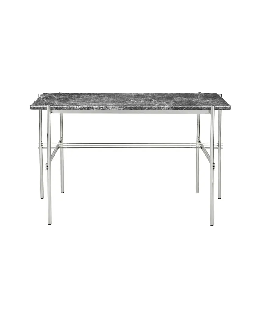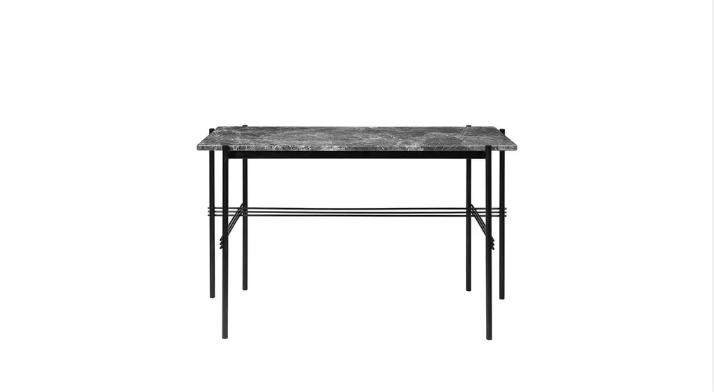An elegant marble table that blends rich materiality with a graphic design. TS, short for The Standard, is inspired by an Art Deco building in Copenhagen of the same name. The table collection is the work of design duo GamFratesi, whose work blends Danish craftsmanship with Italian conceptualism.The round marble tabletop is supported by a black lacquered frame, referencing materials found in the original TS building. The sophisticated marble top, balanced by its simple black frame, creates a composed, yet statement-making design.The collection is manufactured in Denmark by Gubi - a Copenhagen-based purveyor of both historic and contemporary design.