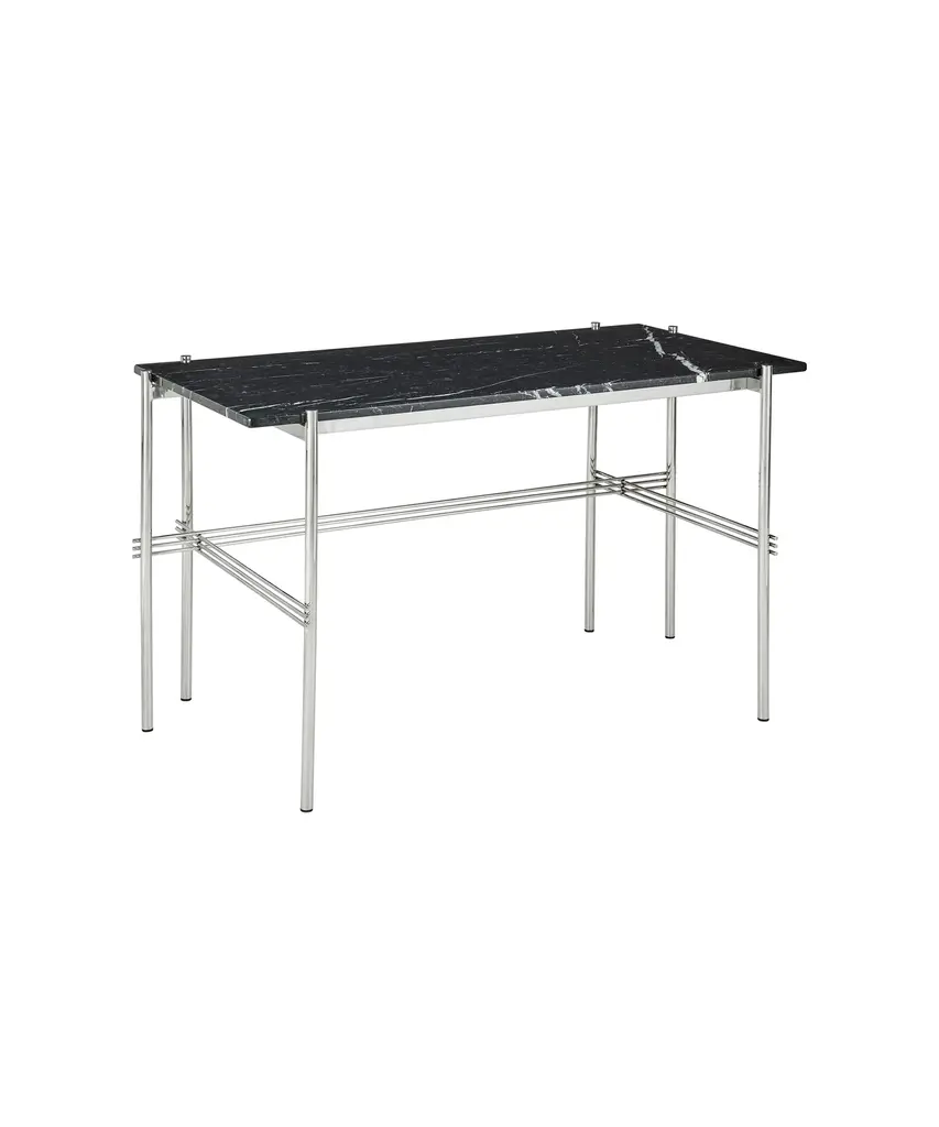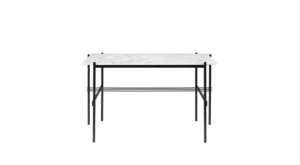 An elegant marble table that blends rich materiality with a graphic design. TS, short for The Standard, is inspired by an Art Deco building in Copenhagen of the same name. The table collection is the work of design duo GamFratesi, whose work blends Danish craftsmanship with Italian conceptualism.The round marble tabletop is supported by a black lacquered frame, referencing materials found in the original TS building. The sophisticated marble top, balanced by its simple black frame, creates a composed, yet statement-making design.The collection is manufactured in Denmark by Gubi - a Copenhagen-based purveyor of both historic and contemporary design.