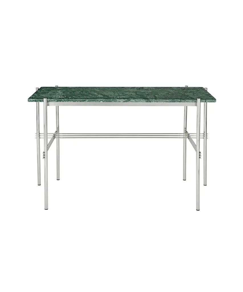 An elegant marble table that blends rich materiality with a graphic design. TS, short for The Standard, is inspired by an Art Deco building in Copenhagen of the same name. The table collection is the work of design duo GamFratesi, whose work blends Danish craftsmanship with Italian conceptualism.The round marble tabletop is supported by a black lacquered frame, referencing materials found in the original TS building. The sophisticated marble top, balanced by its simple black frame, creates a composed, yet statement-making design.The collection is manufactured in Denmark by Gubi - a Copenhagen-based purveyor of both historic and contemporary design.