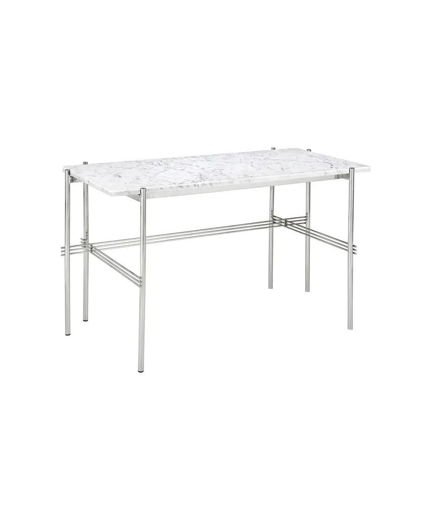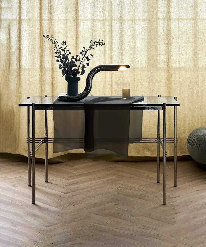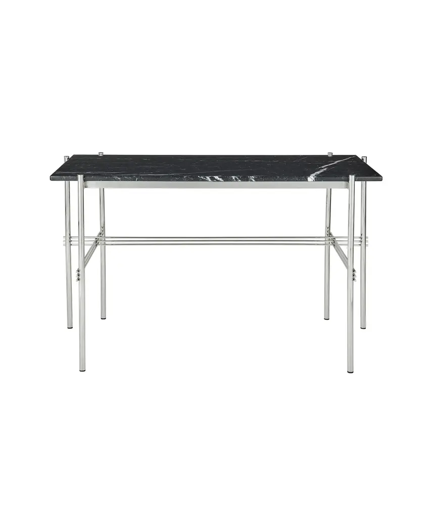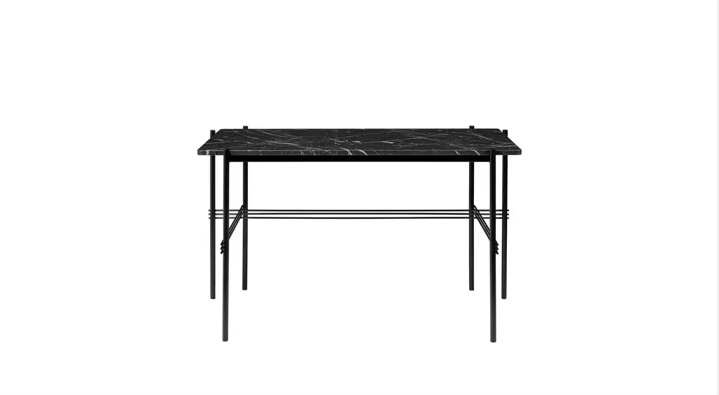 An elegant marble table that blends rich materiality with a graphic design. TS, short for The Standard, is inspired by an Art Deco building in Copenhagen of the same name. The table collection is the work of design duo GamFratesi, whose work blends Danish craftsmanship with Italian conceptualism.The round marble tabletop is supported by a black lacquered frame, referencing materials found in the original TS building. The sophisticated marble top, balanced by its simple black frame, creates a composed, yet statement-making design.The collection is manufactured in Denmark by Gubi - a Copenhagen-based purveyor of both historic and contemporary design.