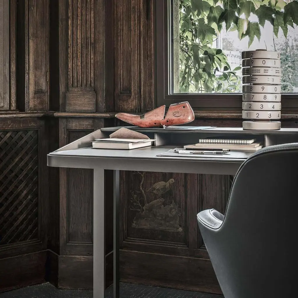 Scroll down and click "view all from Seller" to see more than 400 other unique products. (1.8)The twain desk has a lacquered brushed steel frame, which gives the base, the top and the secondary shelf their soft, rounded form. Both shelves of the top are upholstered in soft leather which emphasizes the welcoming nature of this desk.Designed by Gordon GuillaumierMade in Italy:Made in Italy furniture means design, quality, style and sophistication.The typical elegance of Italian design can be found in this piece. No wonder that the world famous designers like Philippe Starck, Karim Rashid, Piero Lissoni, Rodolfo Dordoni and many others put their signature next to Made in Italy.