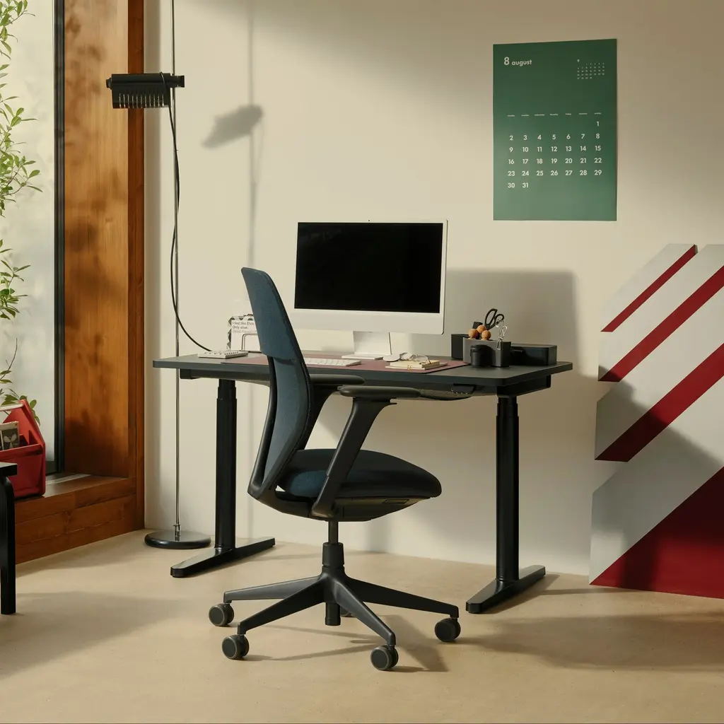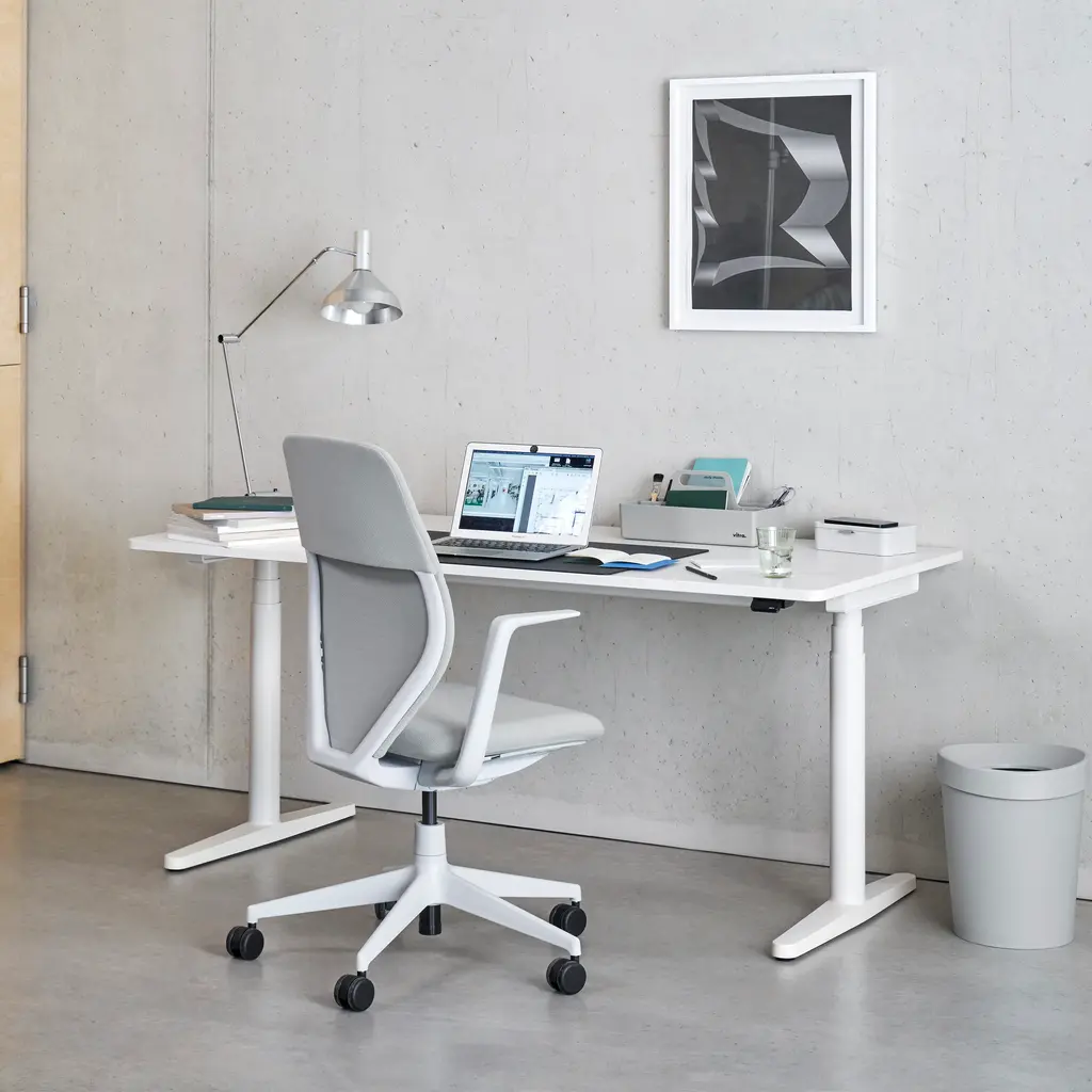 Elevate your home office with the Tyde 2 Home Desk from Vitra, designed by Ronan and Erwan Bouroullec. With discreetly concealed electric height adjustment and a sleek, modern design, this desk allows for the health benefits of alternating between sitting and standing while maintaining a casual and relaxed aesthetic. Highlights