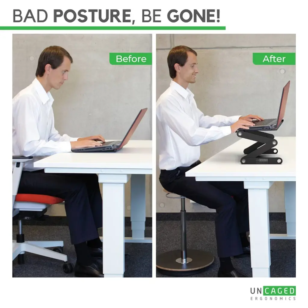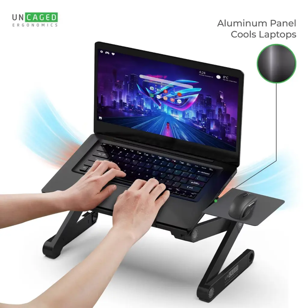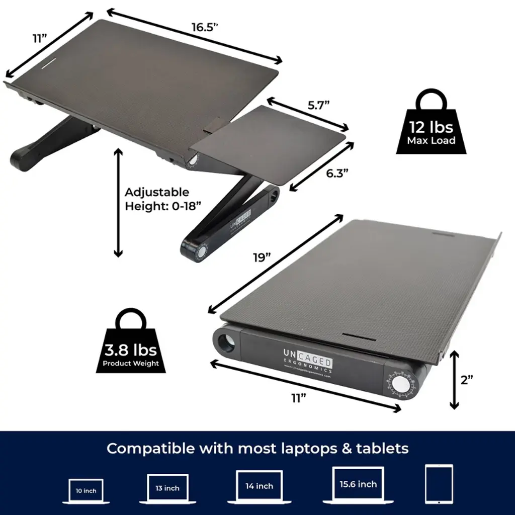 Uncaged Ergonomics Workez Adjustable Laptop Stand & Lap Desk Black: Modern Aluminum Couch Desk, No Assembly Required