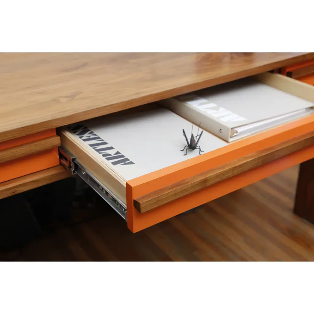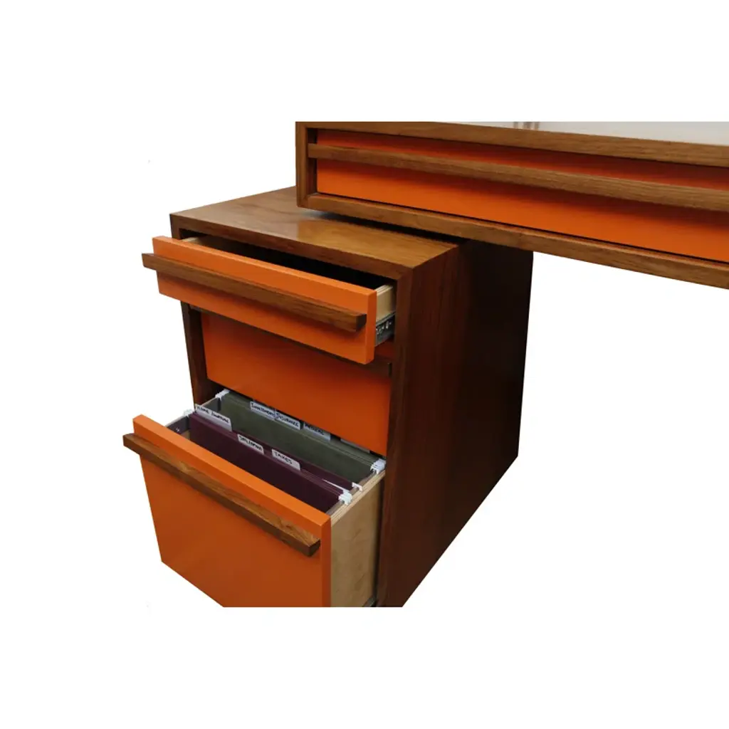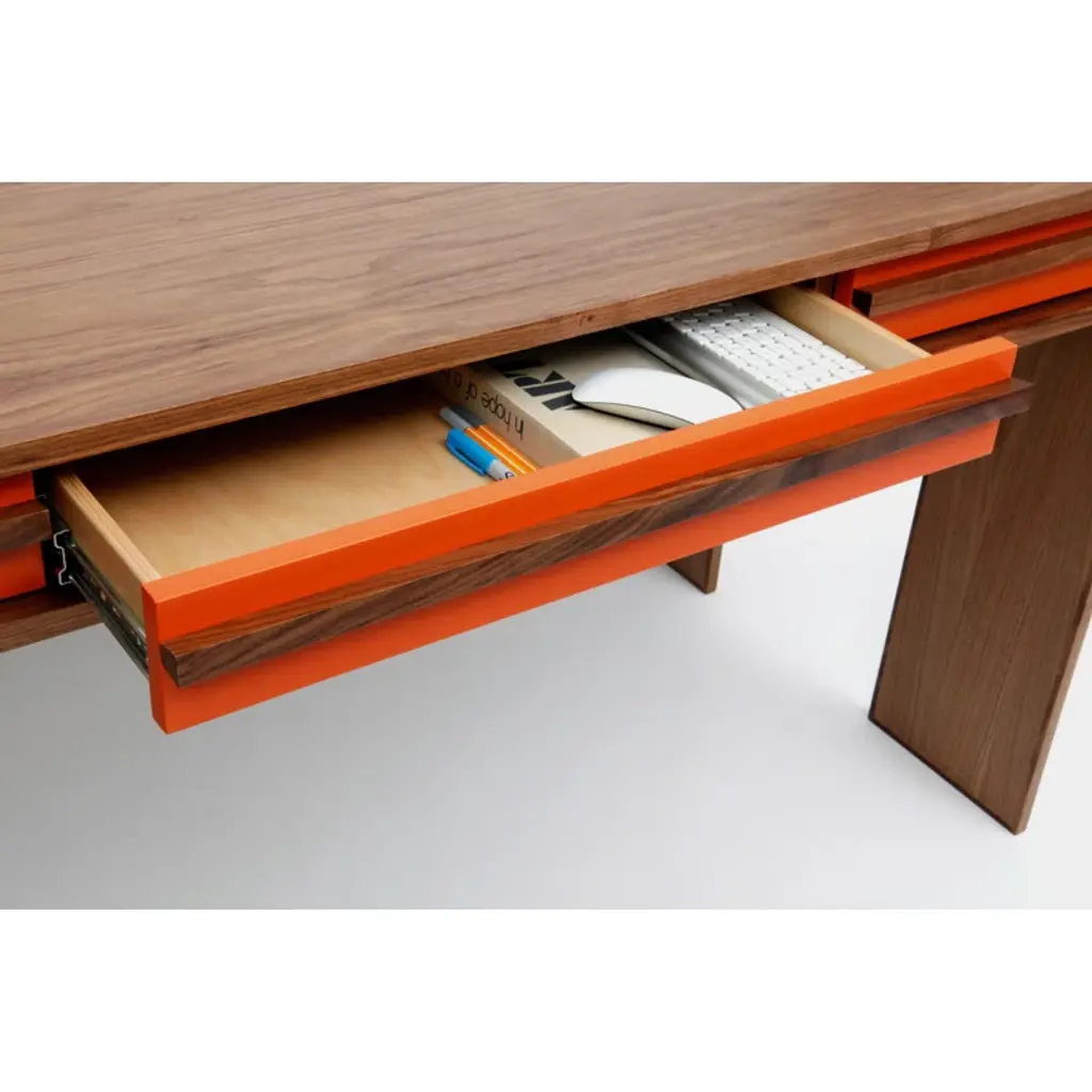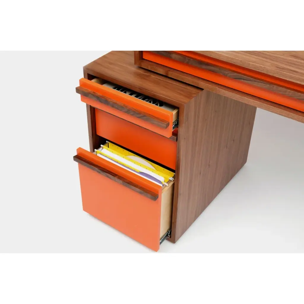 Artless Writing Unit excels as a desk and as a storage system. With enough drawers to handle your day-to-day paperwork, this piece keeps you working as it keeps you tidy. Three long and deep pencil drawers on the top, plus plenty of storage on the side unit, and a filing drawer on the bottom. The solid edge finish extends the piece’s life as it protects against the most exposed area, preventing everyday nicks and scratches.