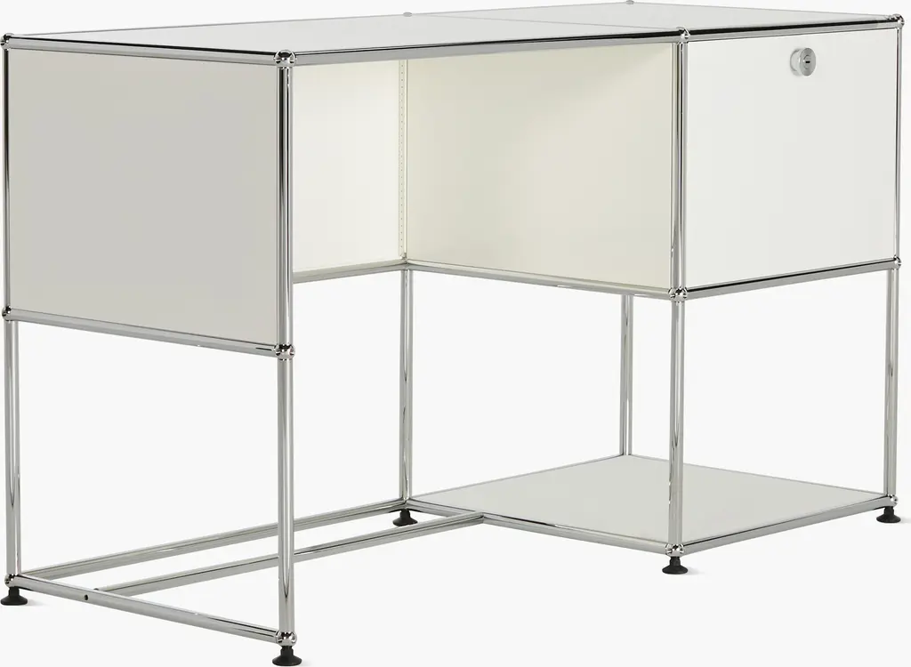 The USM Haller Collection, including the USM Haller Desk, is crafted with precision. Designed by Fritz Haller and Paul Schaerer, the collection is constructed of steel and built to last for generations. Pieces bought 50 years ago can be paired with those purchased today, and you can continue to add others as needs change. Made in Switzerland.