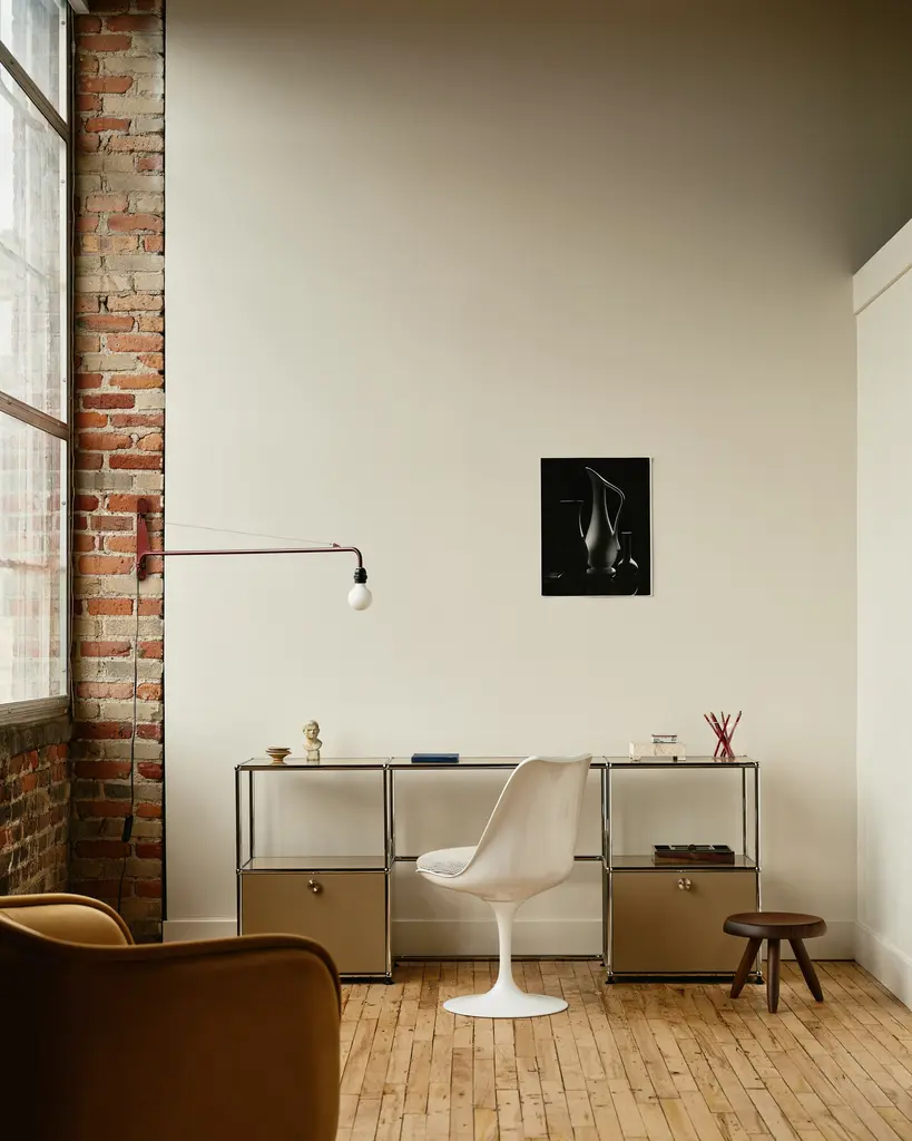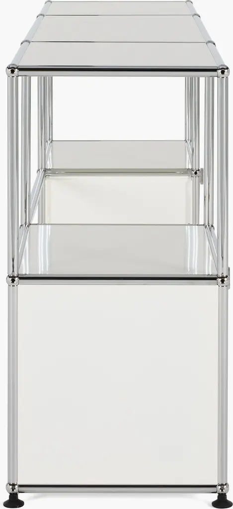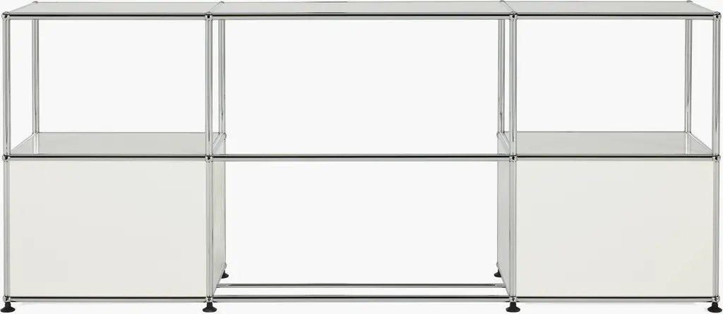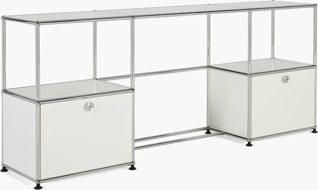 The USM Haller Double Storage Desk combines the legendary Swiss precision of Fritz Haller and Paul Schaerer with expanded functionality for the modern home office. This commanding piece features generous open shelving paired with lockable cabinets beneath, creating comprehensive storage that adapts to your workflow. Constructed from chromed steel frames and powder-coated panels, it embodies USM's commitment to generational durability. Part of the beloved modular system since 1961, this desk grows with your evolving needs while maintaining a timeless elegance. Made in Switzerland.