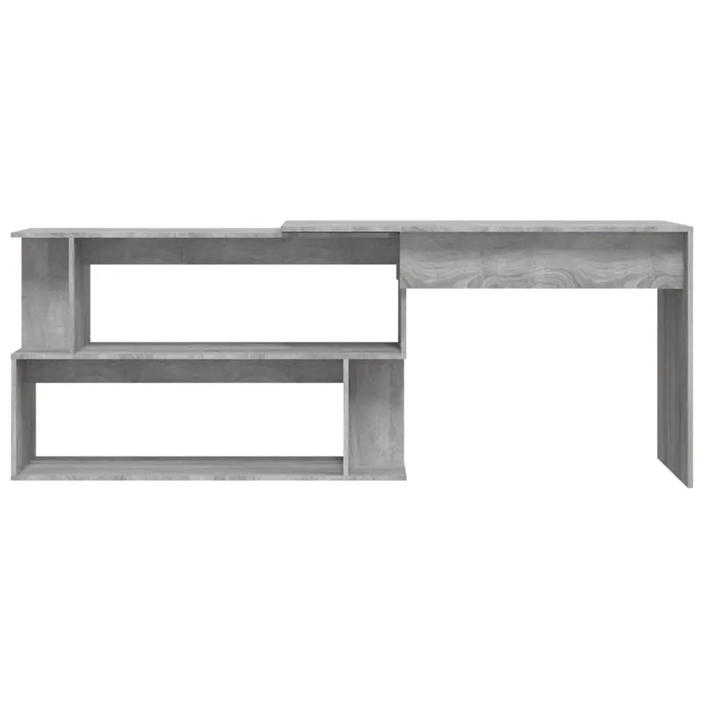 This modern corner desk mixes functionality with style, making it a perfect fit for any home office or study space. Made from engineered wood, it flaunts a striking grey sonoma finish that turns any corner into a productive workspace while saving space. Stylish Grey Finish: The grey sonoma gives this desk a sleek, modern look, helping it blend well with a variety of styles while keeping a professional edge.Ample Surface Area: With dimensions of 78.7in by 19.7in, this desk gives you loads of room for computers, writing stuff, and other office essentials, keeping your workspace tidy.Adjustable Shelves: The adjustable shelves offer flexible storage, letting you customize according to what you need—be it for books, files, or decorative bits.Manual Adjustment Mechanism: This desk has a simple rotatable feature so you can adjust it for your comfort, promoting a better working position.Durability and Care: Built from moisture-resistant engineered wood, this desk is made to last, and it’s easy to keep clean to stay looking good for ages.