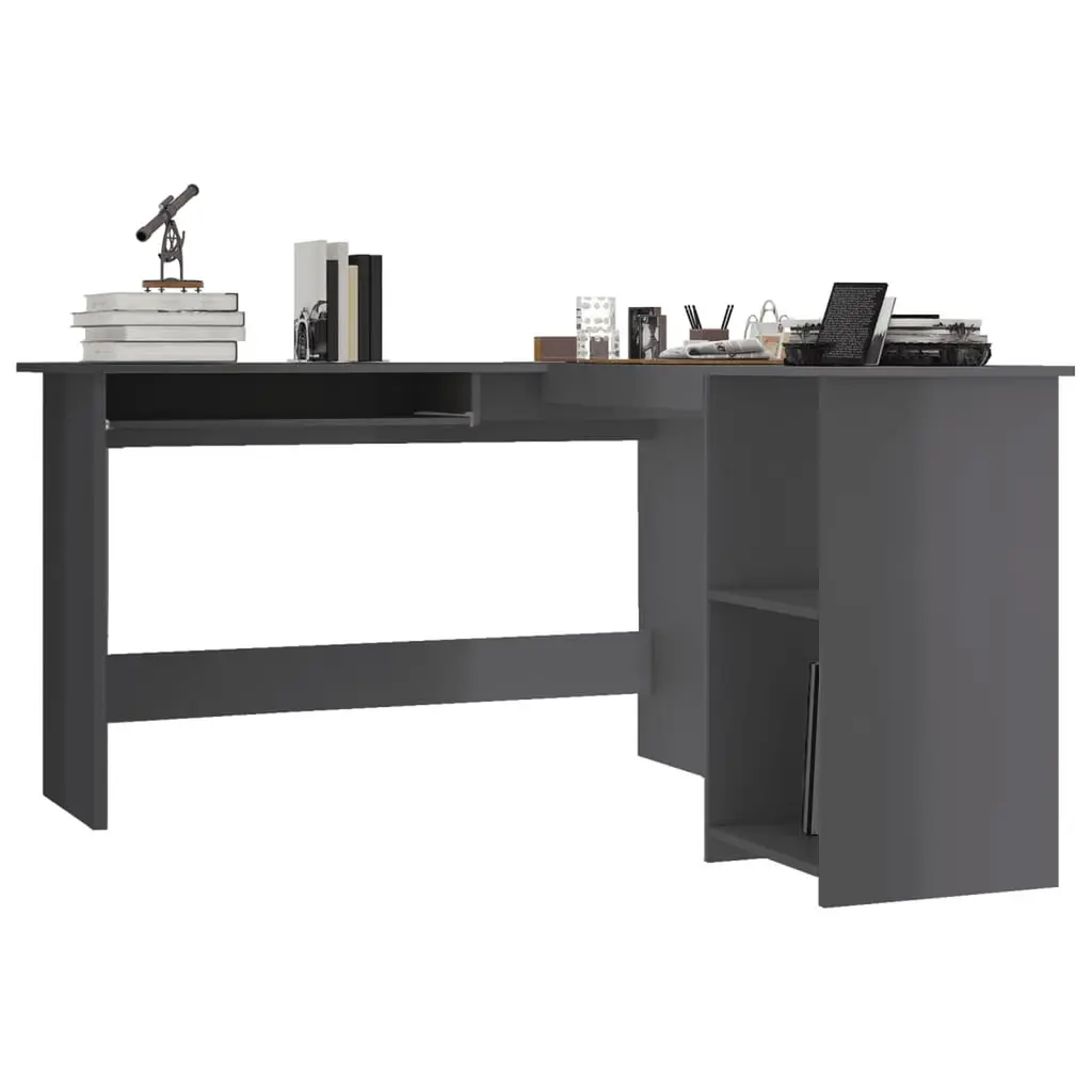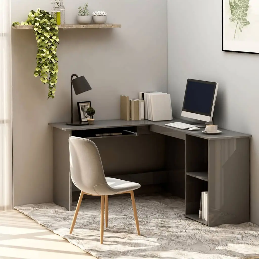 This L-Shaped Corner Desk in High Gloss Grey is perfect if you're after style and practicality. With its posh yet modern look, it blends in nicely in any home office or study, creating a tidy and professional vibe that boosts productivity. The sleek design is topped off with a glossy, reflective surface that catches the light, making it an eye-catching addition whether you're gaming, writing, or just using the computer. Customizable Setup: The desk has sliding components that allow for a flexible arrangement to suit any room layout. Adjusting the desk for your needs ensures you stay comfortable and helps the overall functionality of your workspace. Ample Storage: With built-in shelves, this desk offers lots of space to keep your essentials organized. No more clutter, as these shelves make it easy to grab your books, documents, and office supplies. Sleek Finish: The high-gloss grey surface looks classy and is easy to keep clean. The polished finish adds a snazzy touch, making it suitable for anyone who appreciates good looks in their workspace. Compact Design: Made to fit snug in corners, this desk maximizes space in smaller rooms while giving you plenty of surface area. Perfect for studio apartments or home offices, it uses every inch effectively without losing the stylish touch. Recommended Use: This corner desk shines as a computer workstation, gaming spot, or writing table—ideal for various activities. Whether you're working from home or chilling with a game, this desk covers all your needs.