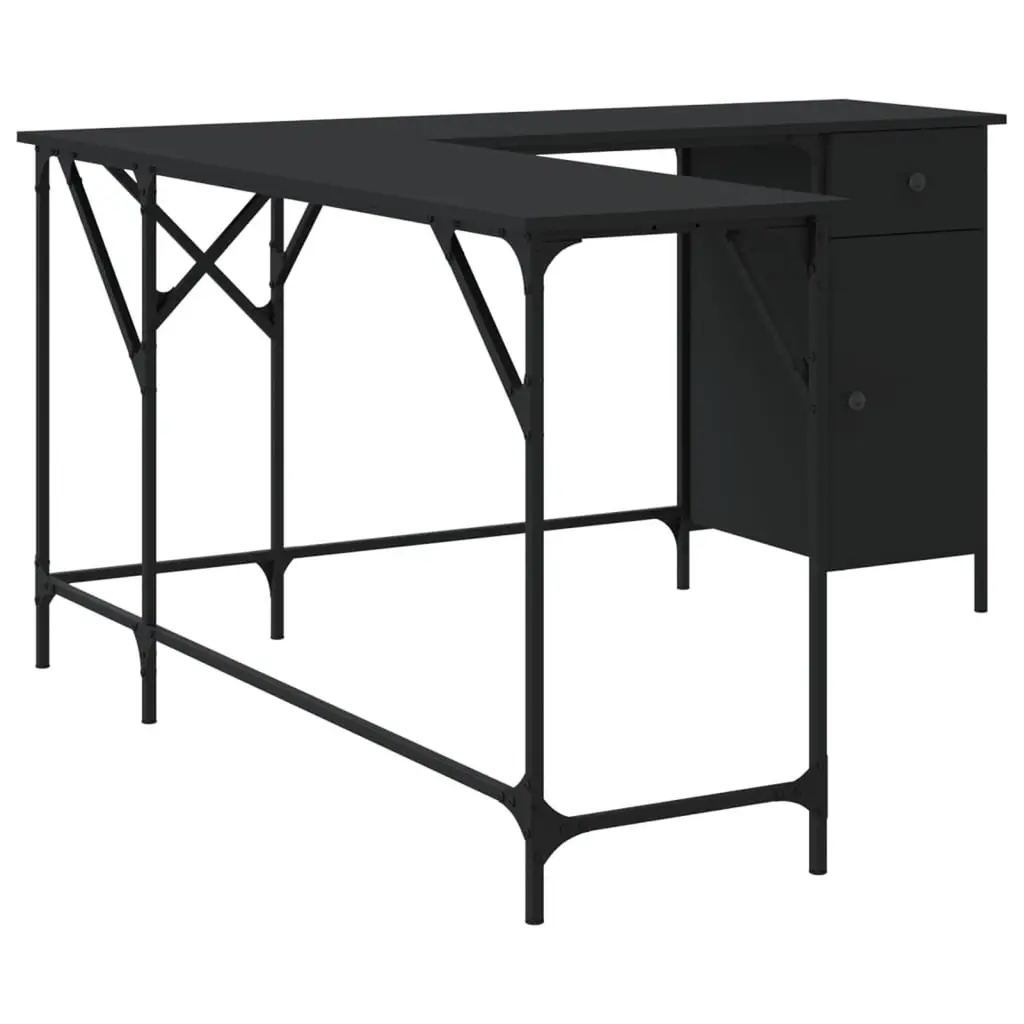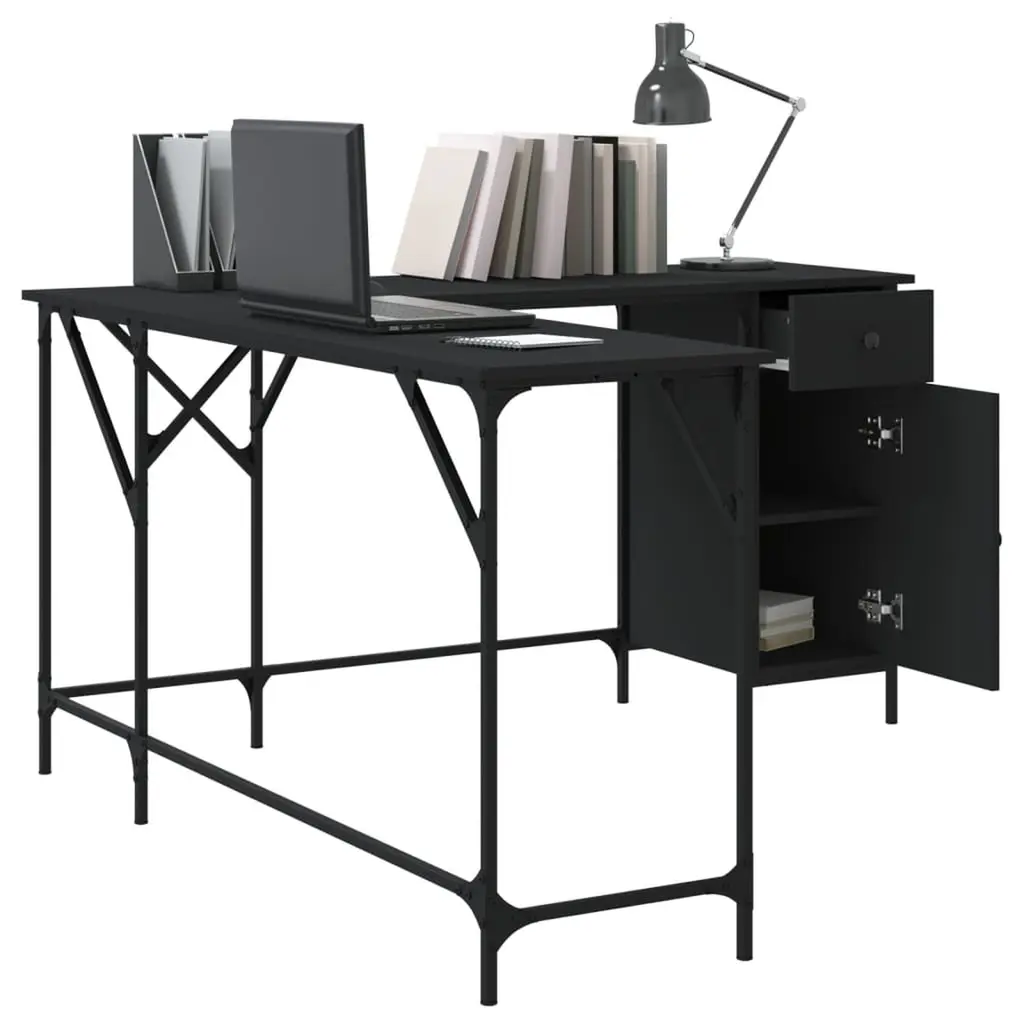 Vidaxl Desk Black Engineered Wood Adjustable Feet Corner Desk