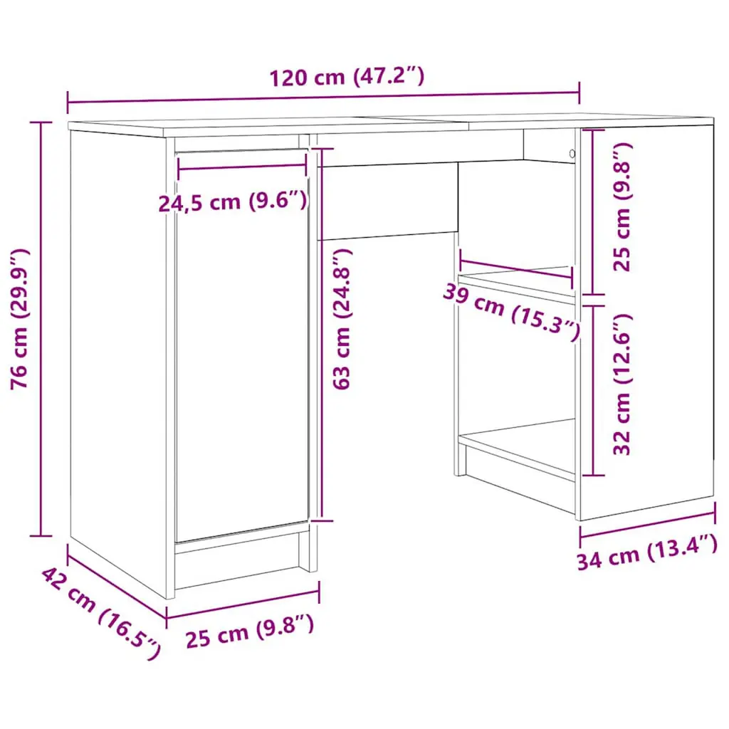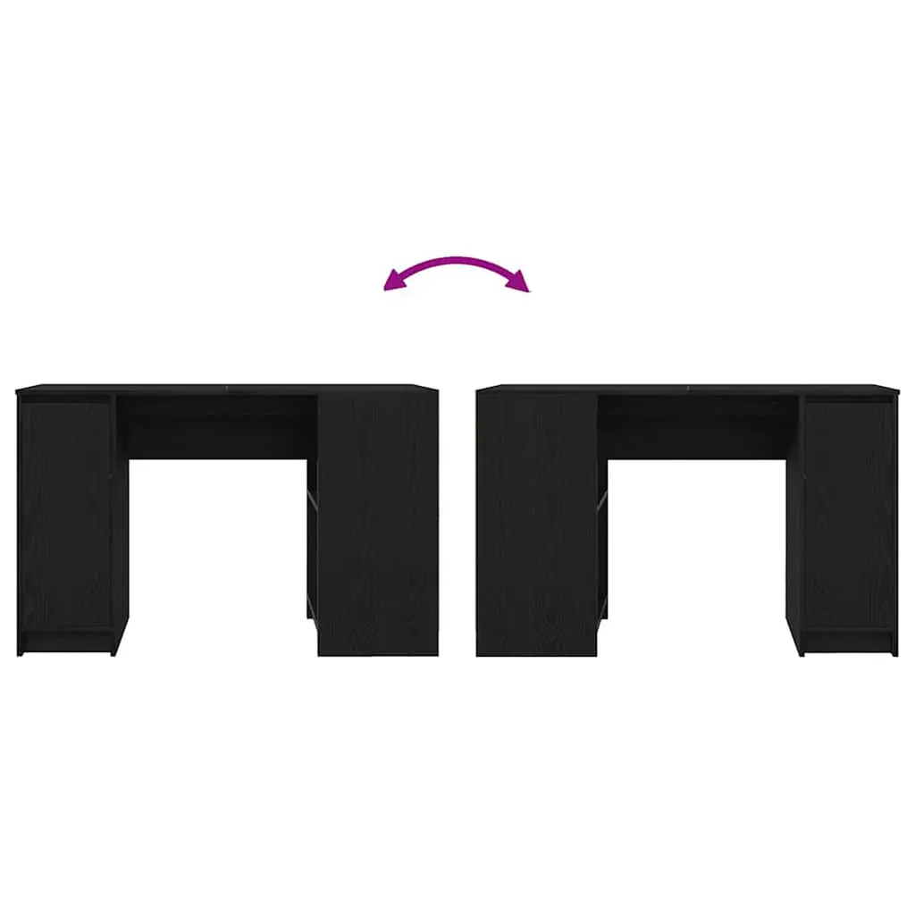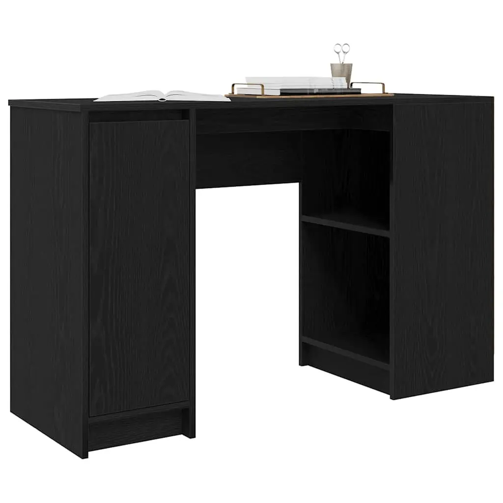 Vidaxl Desk Black Oak Engineered Wood Medium Drawers Desk