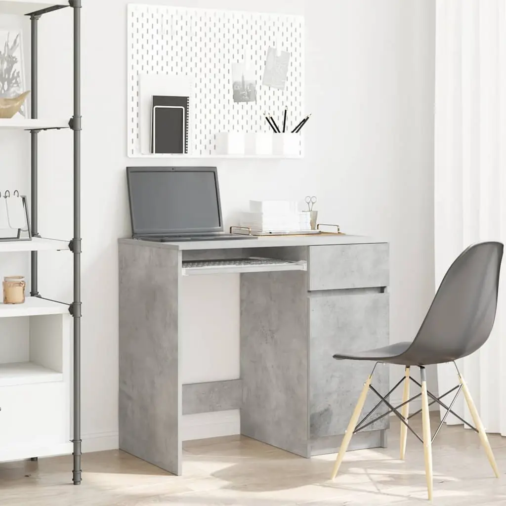 Vidaxl Desk Concrete Grey Engineered Wood Medium Storage Desk