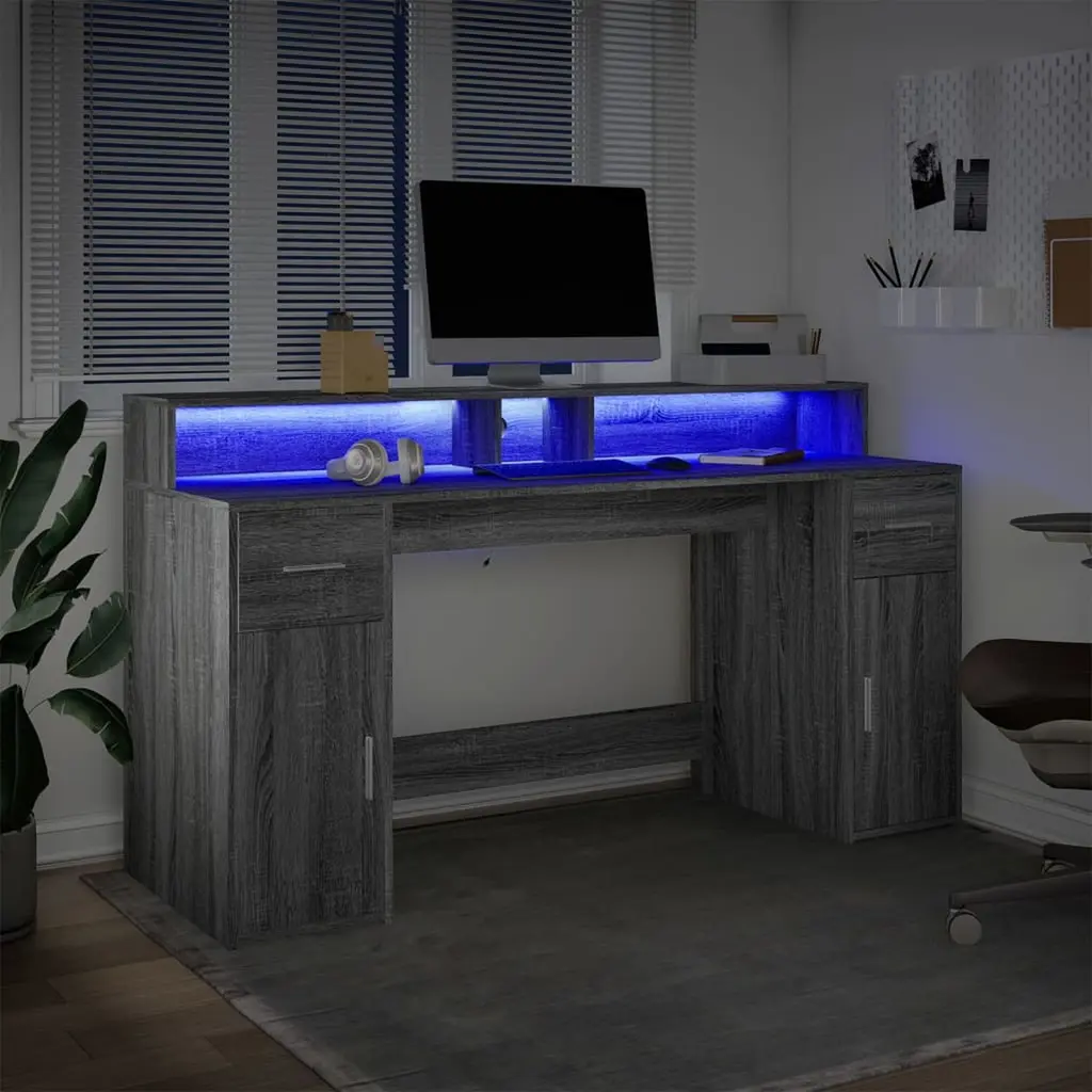 This modern computer desk is made for anyone wanting style and function in their work area. With clean lines and a smooth gray sonoma finish, it’s a fab add-on to your home office or living room, creating a posh environment suitable for studying, gaming, or work. The mix of engineered wood and smart built-in features boosts its look, giving you a productive feel while fitting all your gear perfectly. Ample Storage: The desk comes with plenty of storage options, including two doors and a large drawer for easy access to the things you need, while keeping your workspace neat. This feature boosts the convenience of keeping things tidy and quick to grab, leading to a smooth workflow.Built-In RGB Lighting: Featuring eye-catching RGB LED lights, this desk adds some flair to your workspace. The lights can be set to any color, perfect for getting the right mood whether you're burning the midnight oil or chilling with some games, guaranteeing a lively and fun atmosphere.Stylish Aesthetic: The modern design comes with a sleek gray sonoma finish, blending elegance and simplicity into any home decor. This stylish piece fits in beautifully with a host of themes, elevating your interior while keeping your work area looking sharp.Versatile Use: Tailored for various functions, this desk is great for gamers and professionals alike. Whether it's for daily studying or serving as a dedicated gaming station, it meets different needs while looking the part.Solid Build: Made of high-quality engineered wood, this desk is all about durability and stability. The strong frame is built to support your gear, making it a solid option for all your tech and study materials.