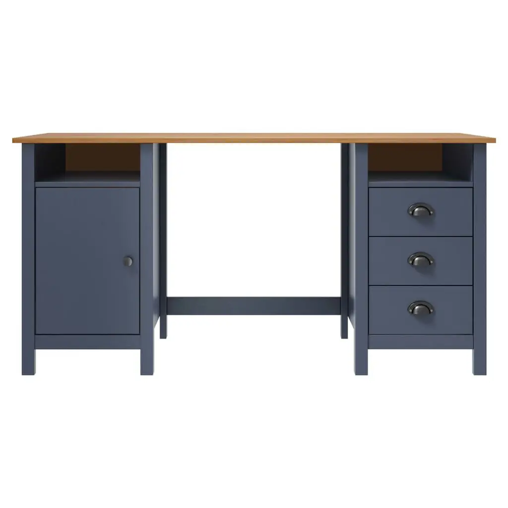 Vidaxl Desk Grey And Honey Brown Solid Pine Wood Desk Rectangular