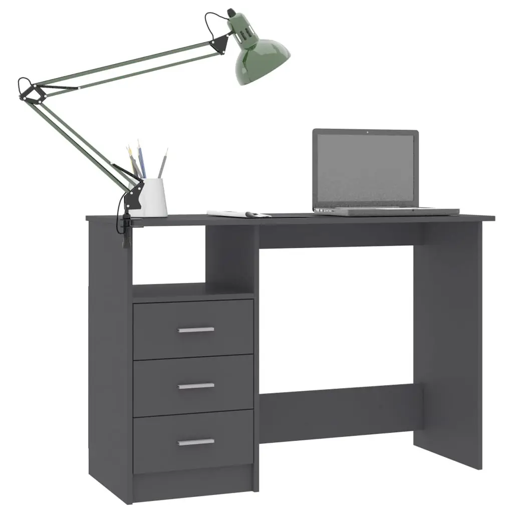 This modern computer desk mixes style and practicality, giving you the convenience needed for a productive workspace. Its rectangular design comes with a smooth grey finish that gives a sophisticated look to any home office or study, encouraging creativity and focus with its sleek lines and minimalist style. Ample Storage: The desk has 3 roomy drawers, balancing aesthetics with practicality; lots of space means keeping your workspace organized is a piece of cake. Sleek Design: The modern matte finish offers elegance while being tough enough for everyday use. Sturdy Construction: Built from engineered wood, this desk offers quality and stability to hold your tech and office essentials. Versatile Use: Be it studying, working, or writing, this desk fits various needs, perfect for anyone from teens to adults involved in deep work. Easy Maintenance: Just give it a quick wipe down with a damp cloth, keeping your workspace neat and tidy.