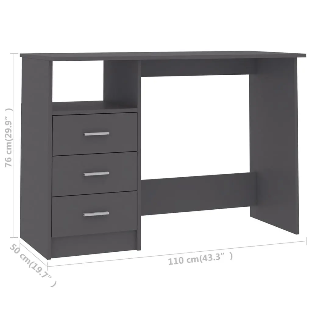 Vidaxl Desk Grey Engineered Wood 43.3 X 19.7 X 29.9 In Desk