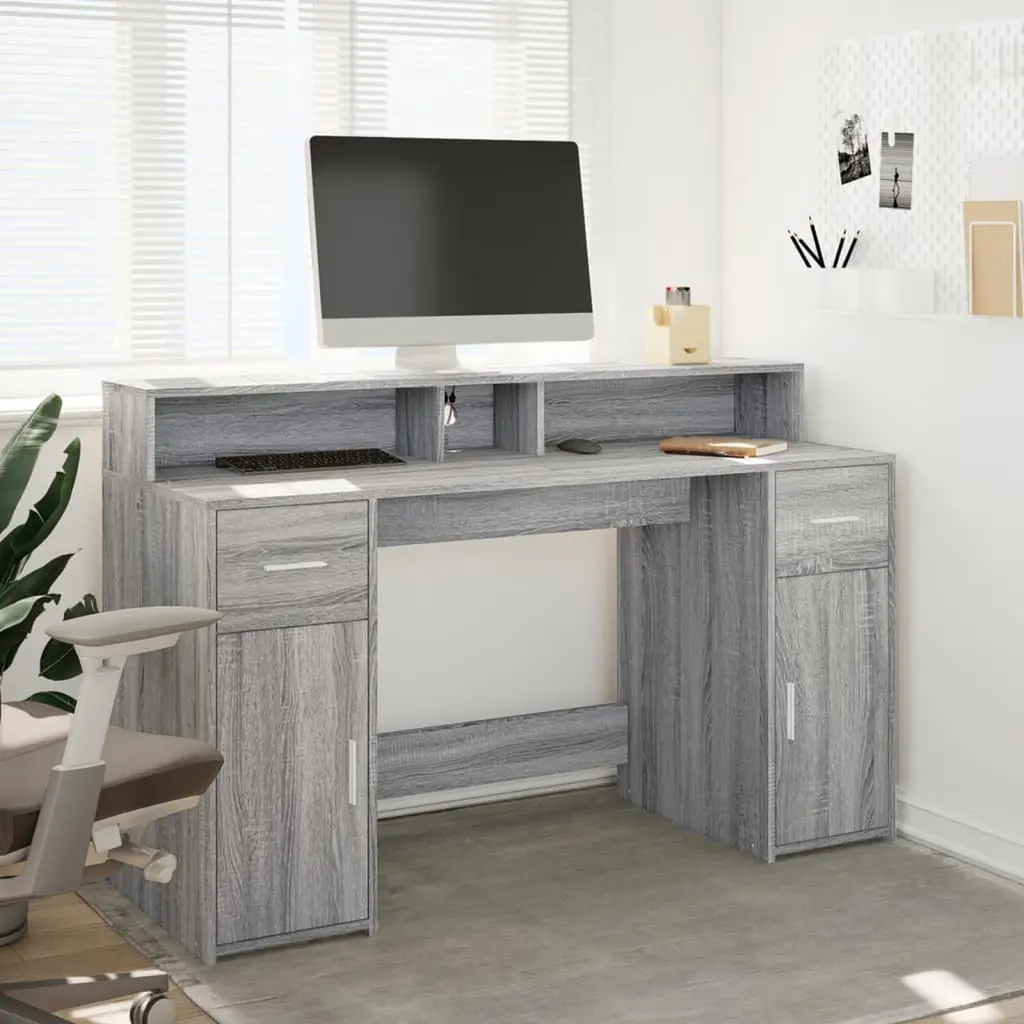 Vidaxl Desk Grey Sonoma Engineered Wood Medium Desk Rectangular